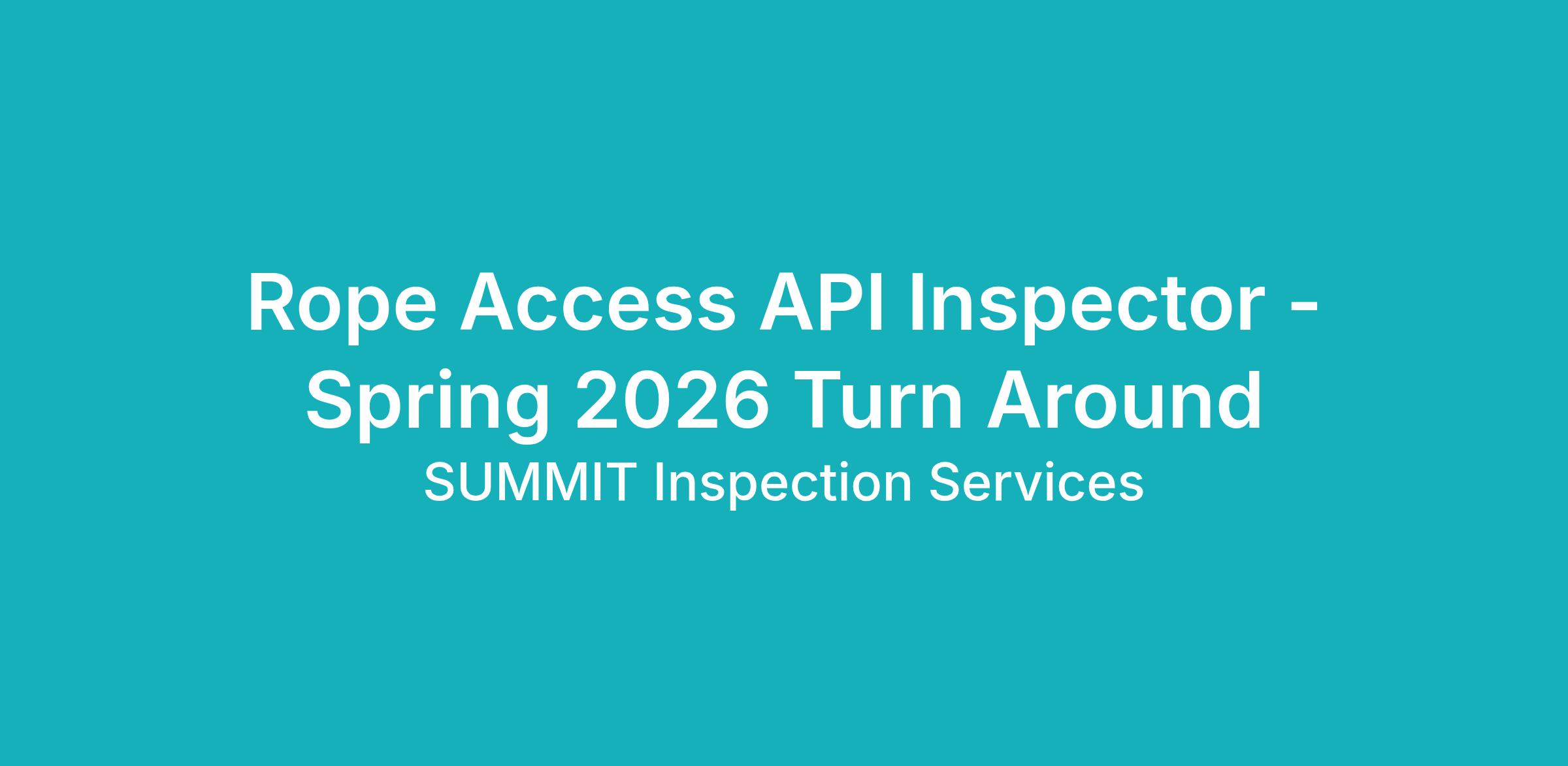 SUMMIT Inspection Services Ltd. is seeking API certified Rope Access inspectors who are self-motivated and safety-oriented individuals to support our spring 2026 Turn Around in Northern Alberta. SUMMIT Inspection Services Ltd. has provided in-service pressure vessel inspections predominately to the Oil and Gas industry across western Canada since 2004, and is seeking skilled, experienced, and team-oriented candidates who value quality and integrity.