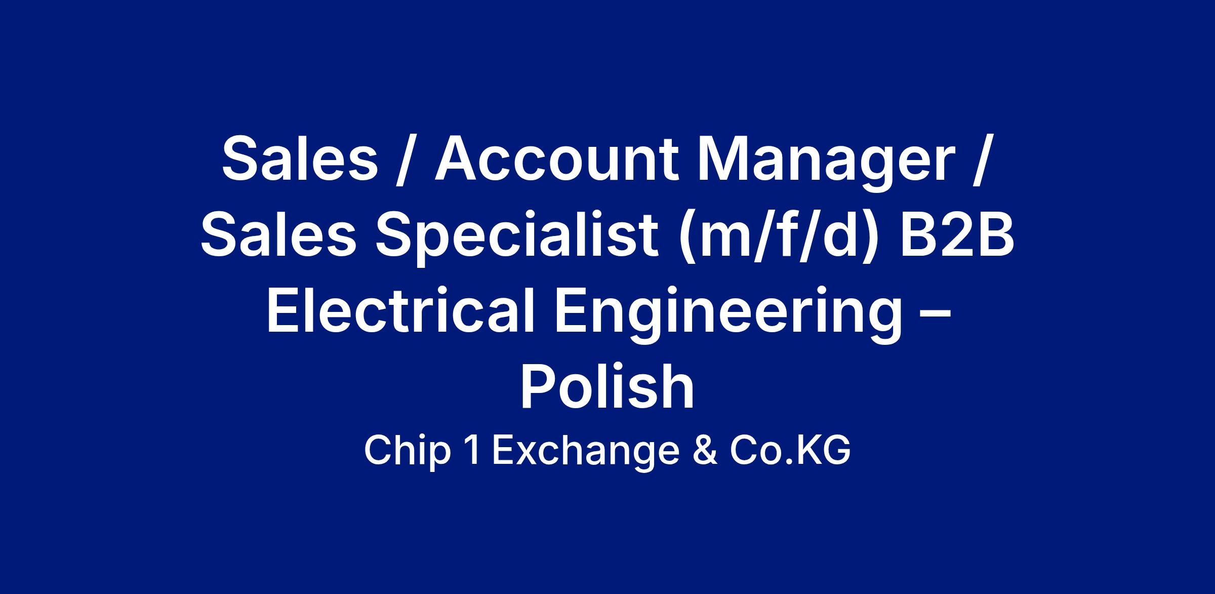 Sales / Account Manager / Sales Specialist (m/f/d) B2B Electrical Engineering – Polish