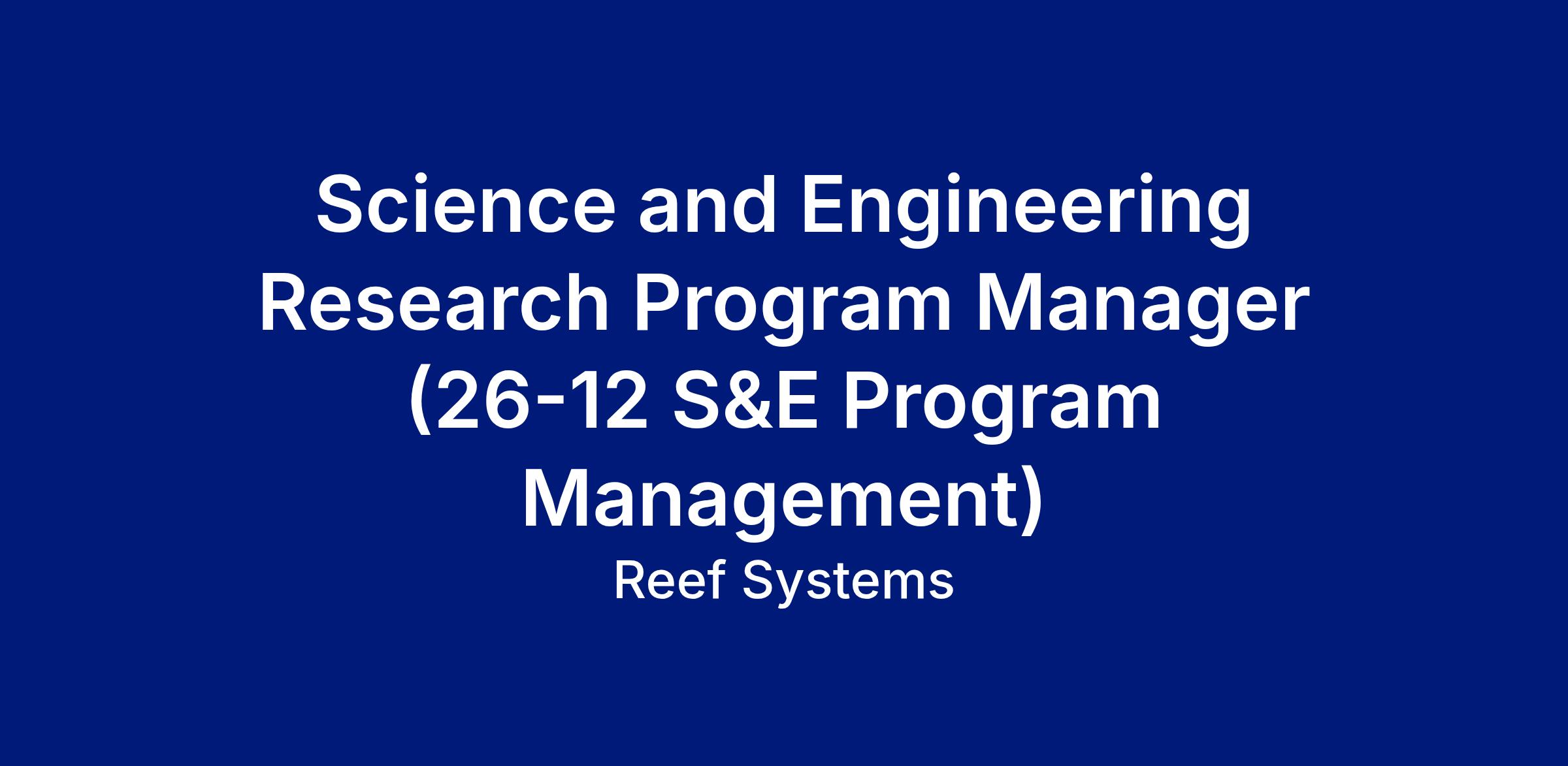 Science and Engineering Research Program Manager (26-12 S&E Program Management)