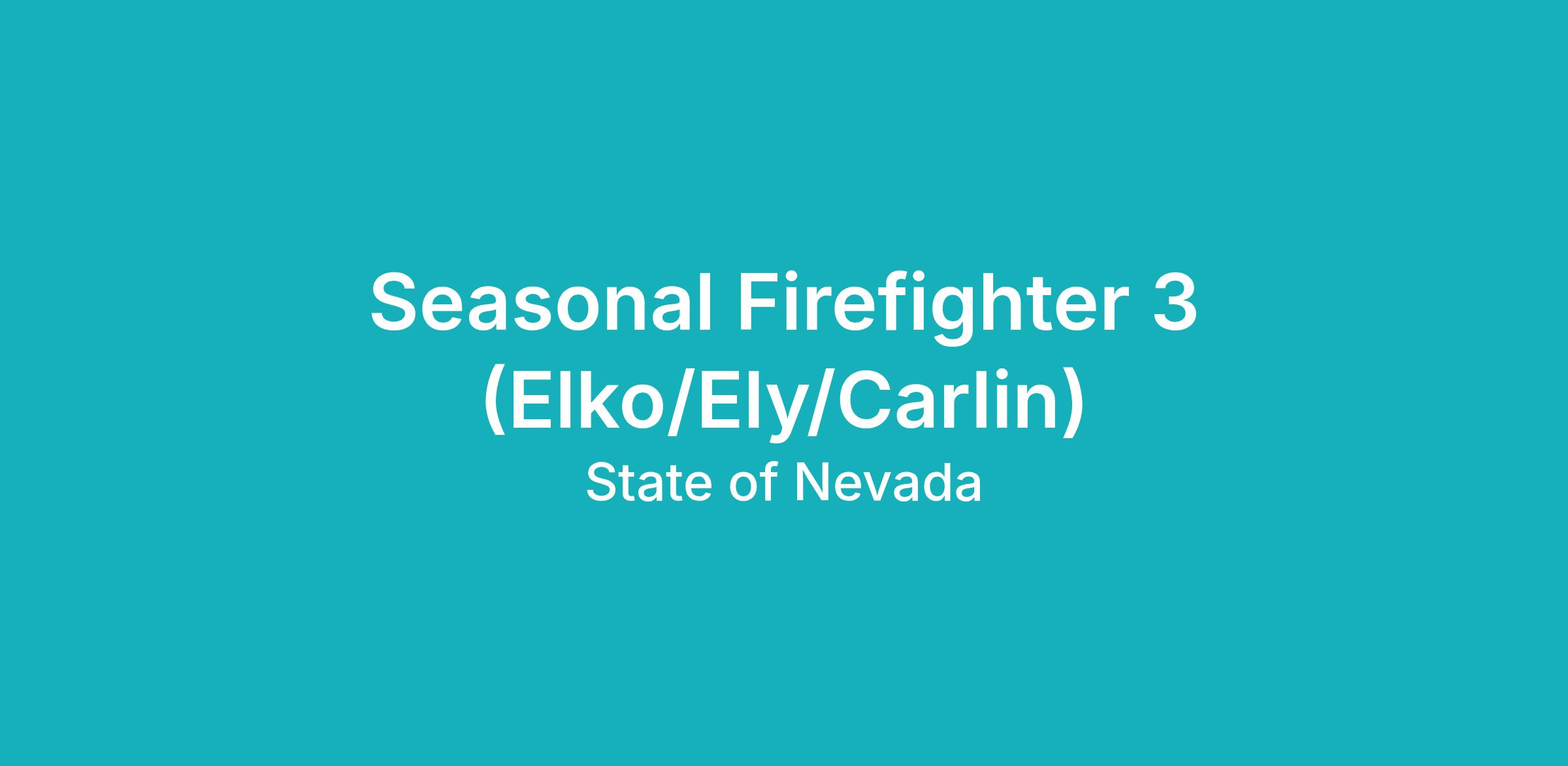 This recruitment is for the Seasonal Firefighter 3 in the Nevada Division of Forestry (NDF) Fire Program in Elko, Ely and Carlin Nevada. This recruitment is open to fire and fuels crews, and engine program. The incumbent is responsible for supporting safe and effective wildfire response, facilitating fire adapted community improvements and maintaining healthy and resilient forest, rangeland and watershed ecosystems. When not assigned to a wildland fire, a Seasonal Firefighter's duties will be working as a crew member to implement hazardous fuel reduction and ecosystem restoration projects. This will involve thinning excess vegetation, piling thinned material, using prescribed burning, applying herbicides, seeding and planting, and other methods that reduce the risk of wildfires, restore health ecosystems and protect communities in the wildland urban interface. This agency does not fight structure fires.