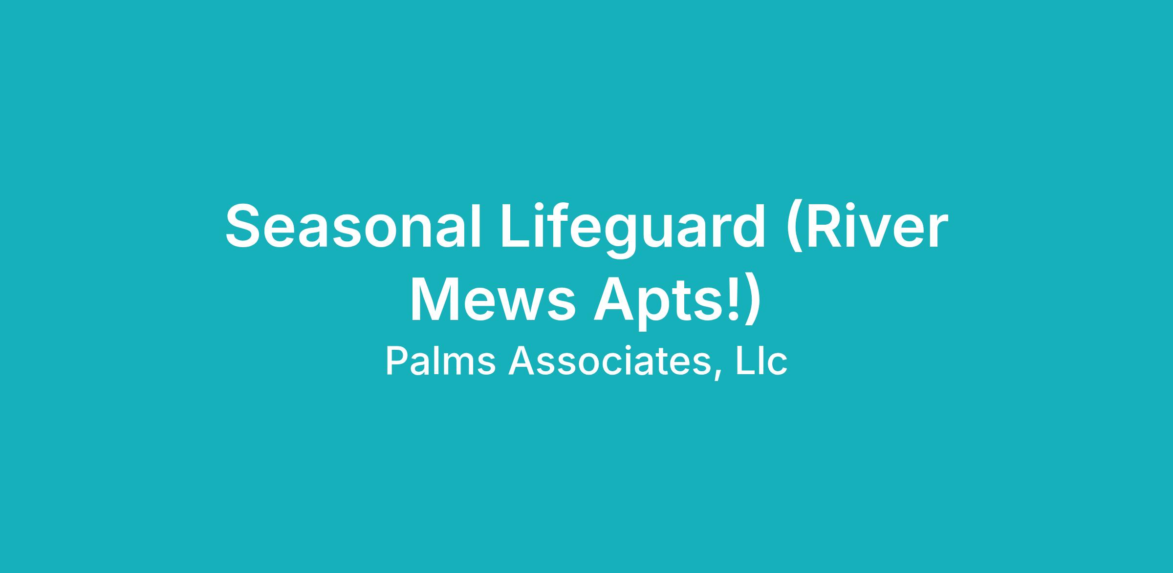 - CPR/Lifeguarding certification is required to begin working; Palms will pay for certification and pay you while you are in training!