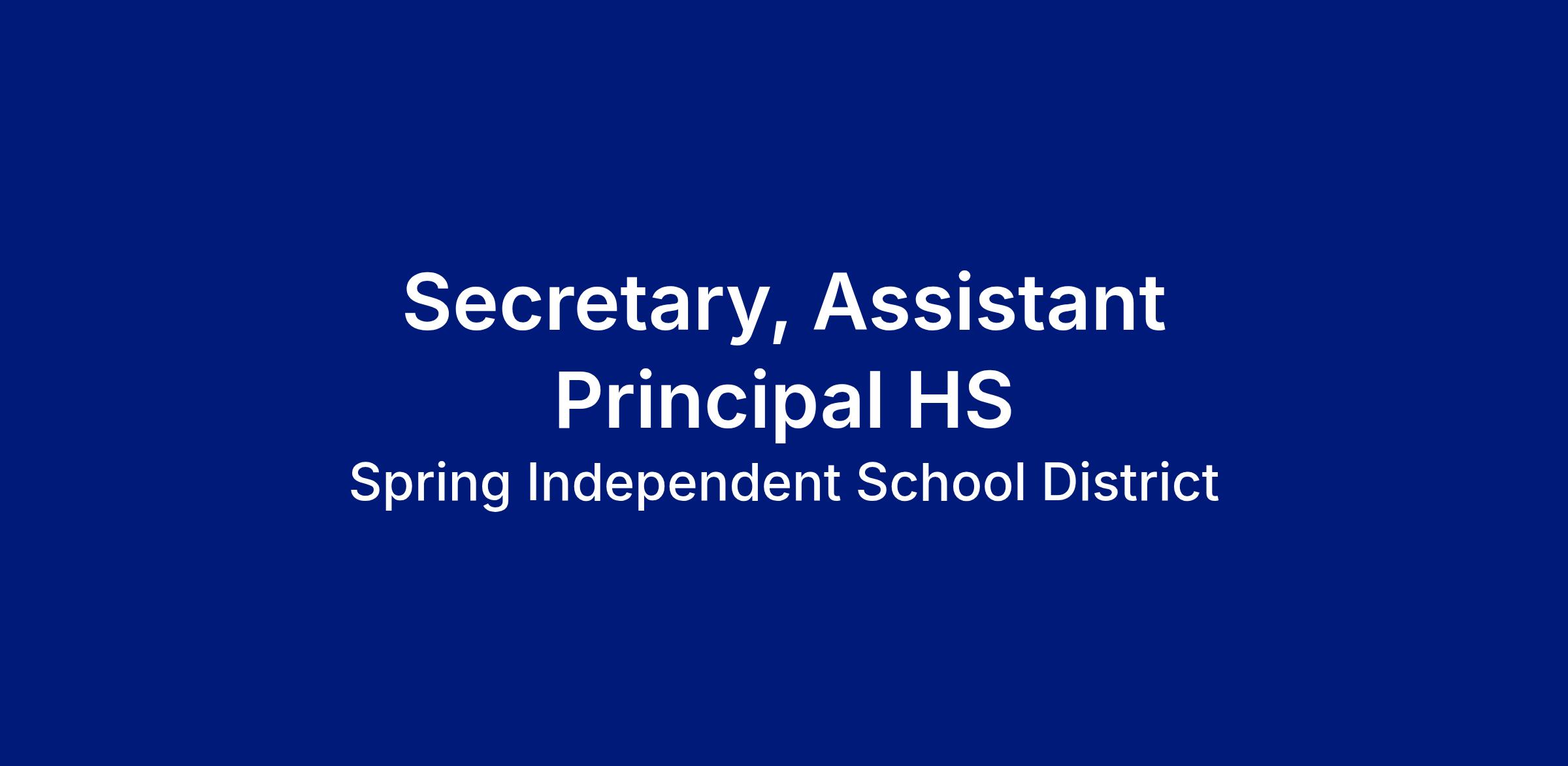 JOB TITLE: Secretary – Assistant Principal, High School
