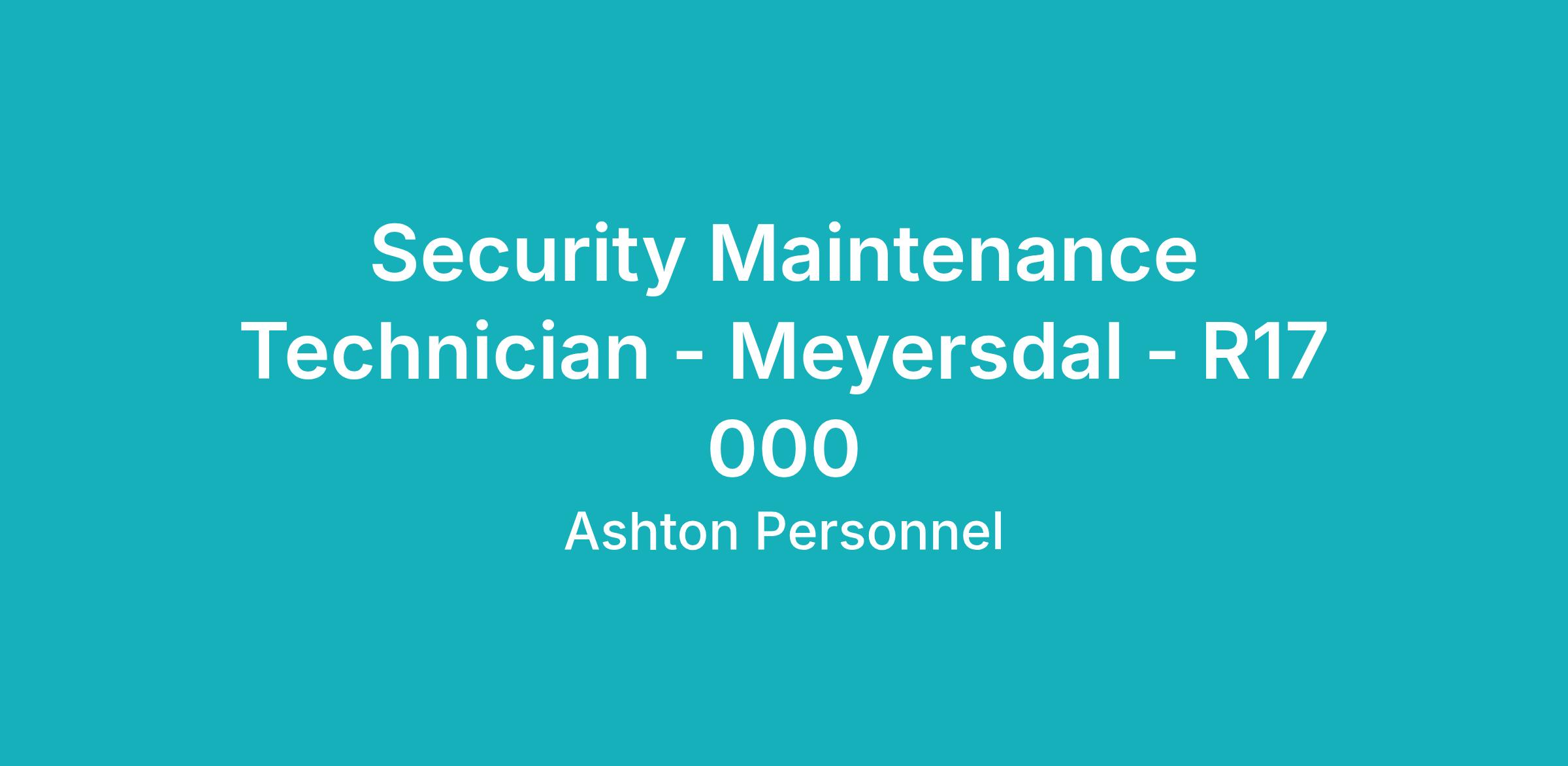 Responsible for all security equipment / electronics for a large estate within Meyersdal