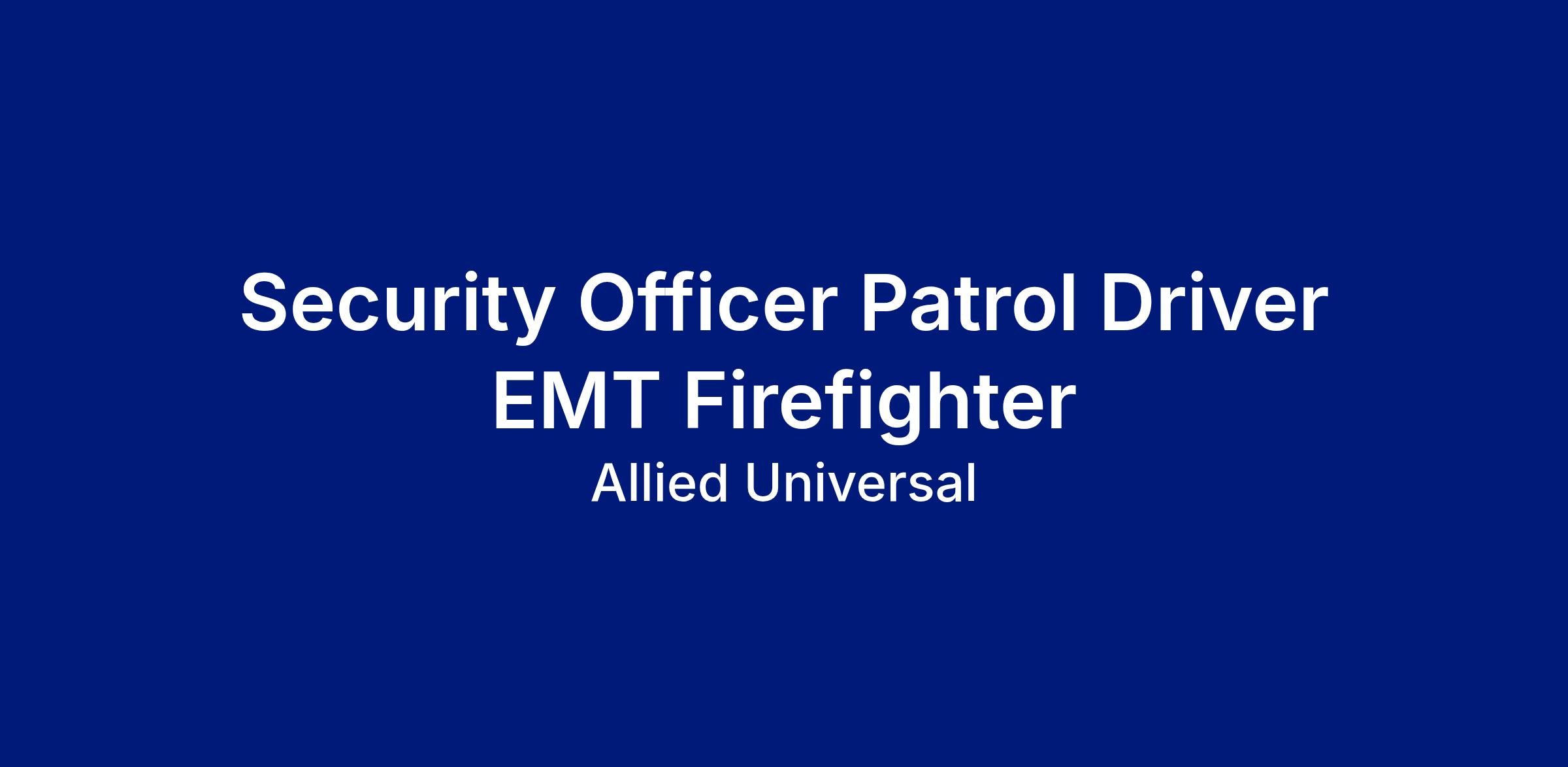 As a Security Officer Patrol Driver EMT in Fairless Hills, PA, you will serve and safeguard clients in a range of industries such as Manufacturing & Industrial, and more. Join a leading team where flexibility meets opportunity. As a Part-Time Security Officer, you can build a schedule that works for you and explore new roles using our Claim a Shift platform. Learn more: aus.com/earnmore. Join Allied Universal as an unarmed officer at a manufacturing and industrial location, where you will monitor and patrol assigned areas, remain visible to help discourage security-related incidents, and deliver outstanding customer service and communication. This is a driving post, offering the opportunity to support daily operations through routine patrols, quick response, and teamwork while reflecting our values of agility, reliability, innovation, and integrity.