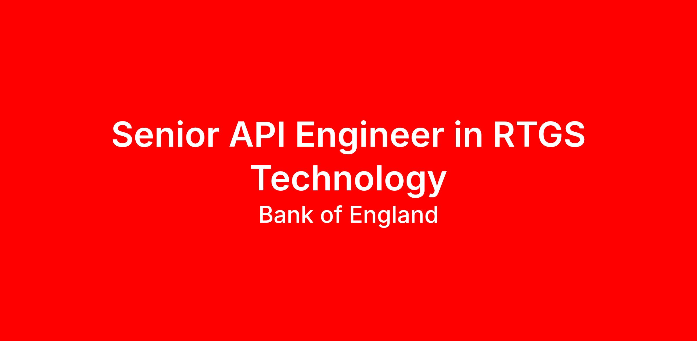 This role presents an exciting opportunity for a Senior API Developer to play a critical part in the development and support of the Bank of England’s Real Time Gross Settlement (RTGS) service — a piece of UK critical national infrastructure that settles on average £800bn per day.