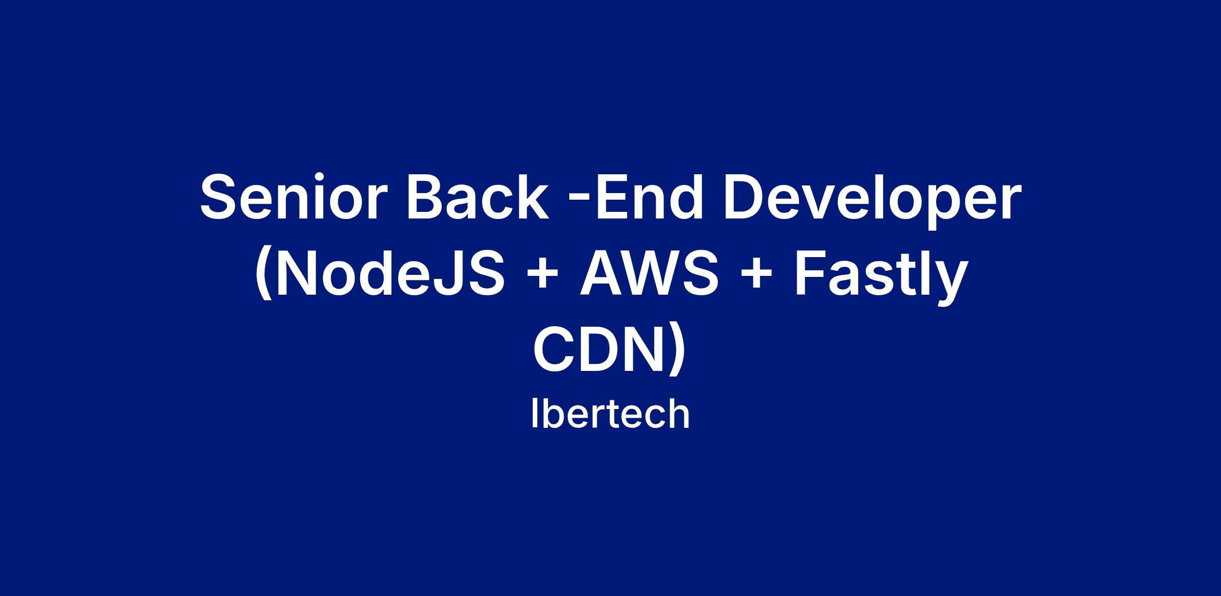 Desde Ibertech, buscamos un perfil Senior Back-End Developer (NodeJS + AWS + Fastly CDN) con inglés fluido para colaborar con uno de nuestros clientes referentes.