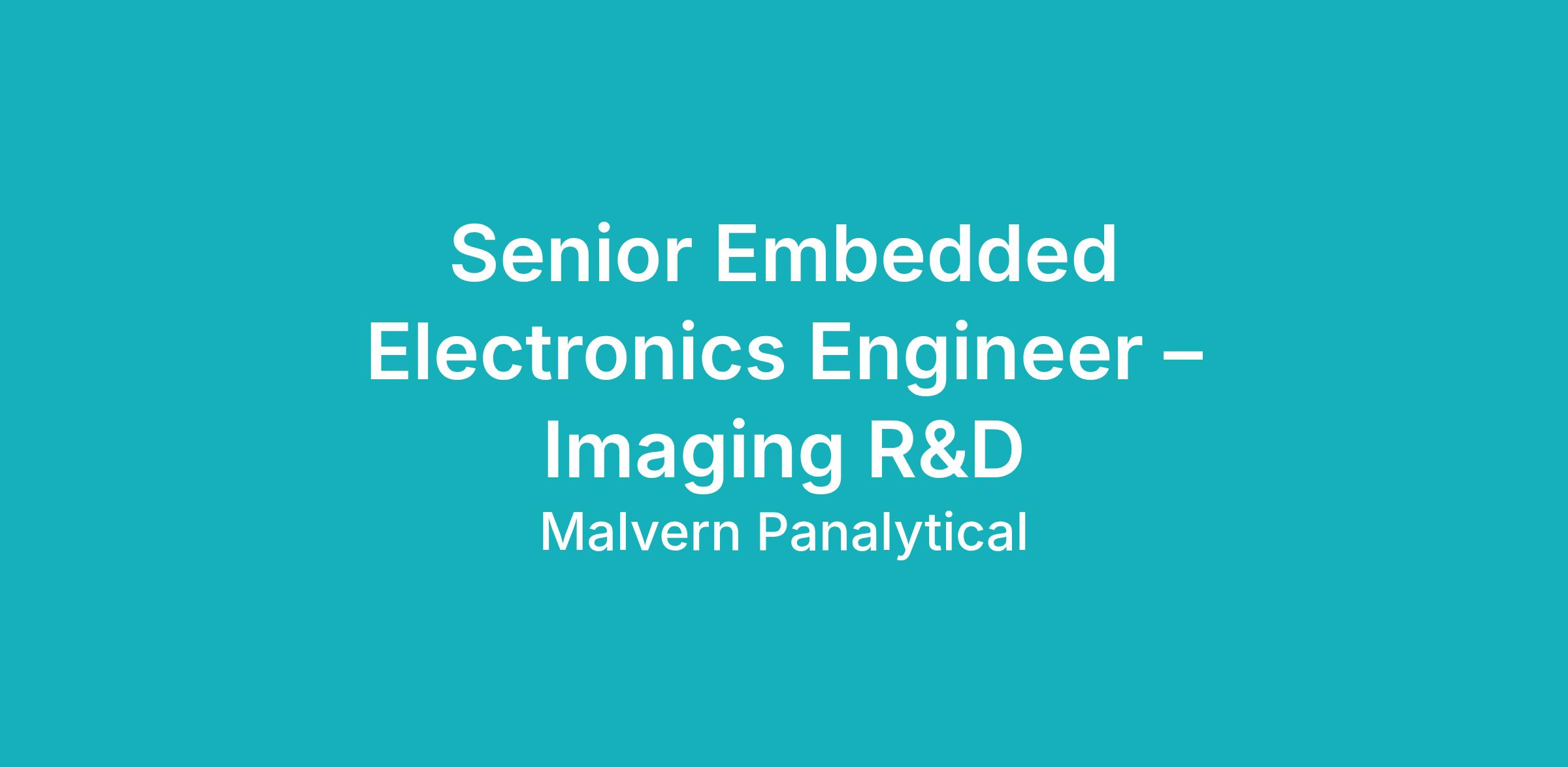 As a Senior Embedded Electronics Engineer, you will play a key role within the Imaging R&D team at Malvern Panalytical, contributing to the development of our particle imaging and characterisation instruments, including Morphologi, NanoSight, and next-generation imaging platforms.