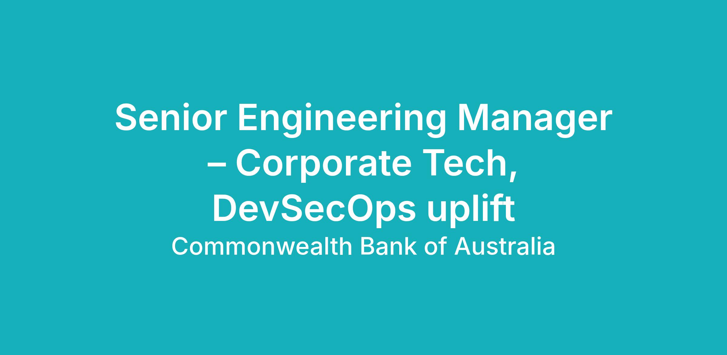 Senior Engineering Manager – Corp Tech, DevSecOps uplift