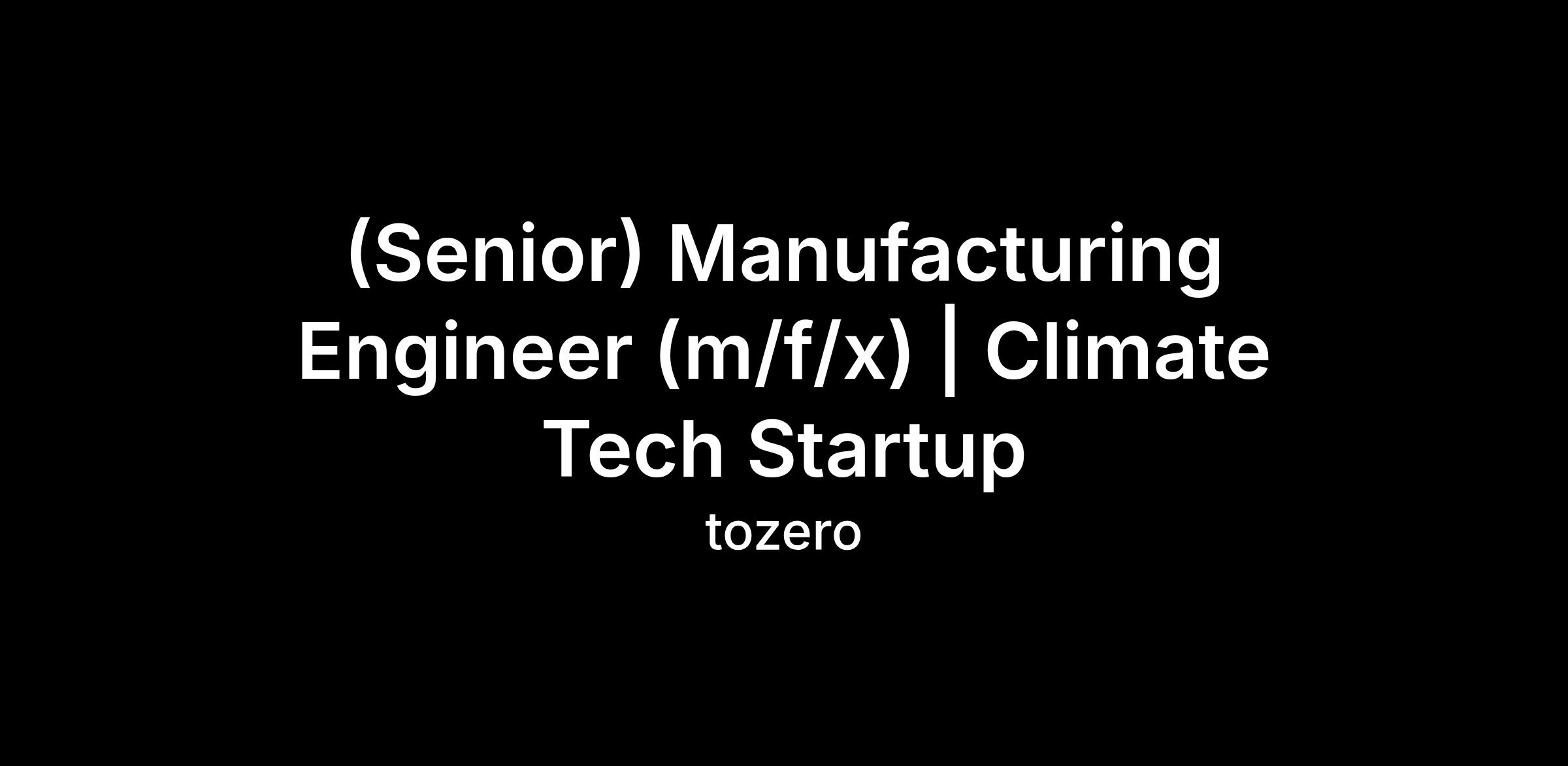(Senior) Manufacturing Engineer (m/f/x) | Climate Tech Startup