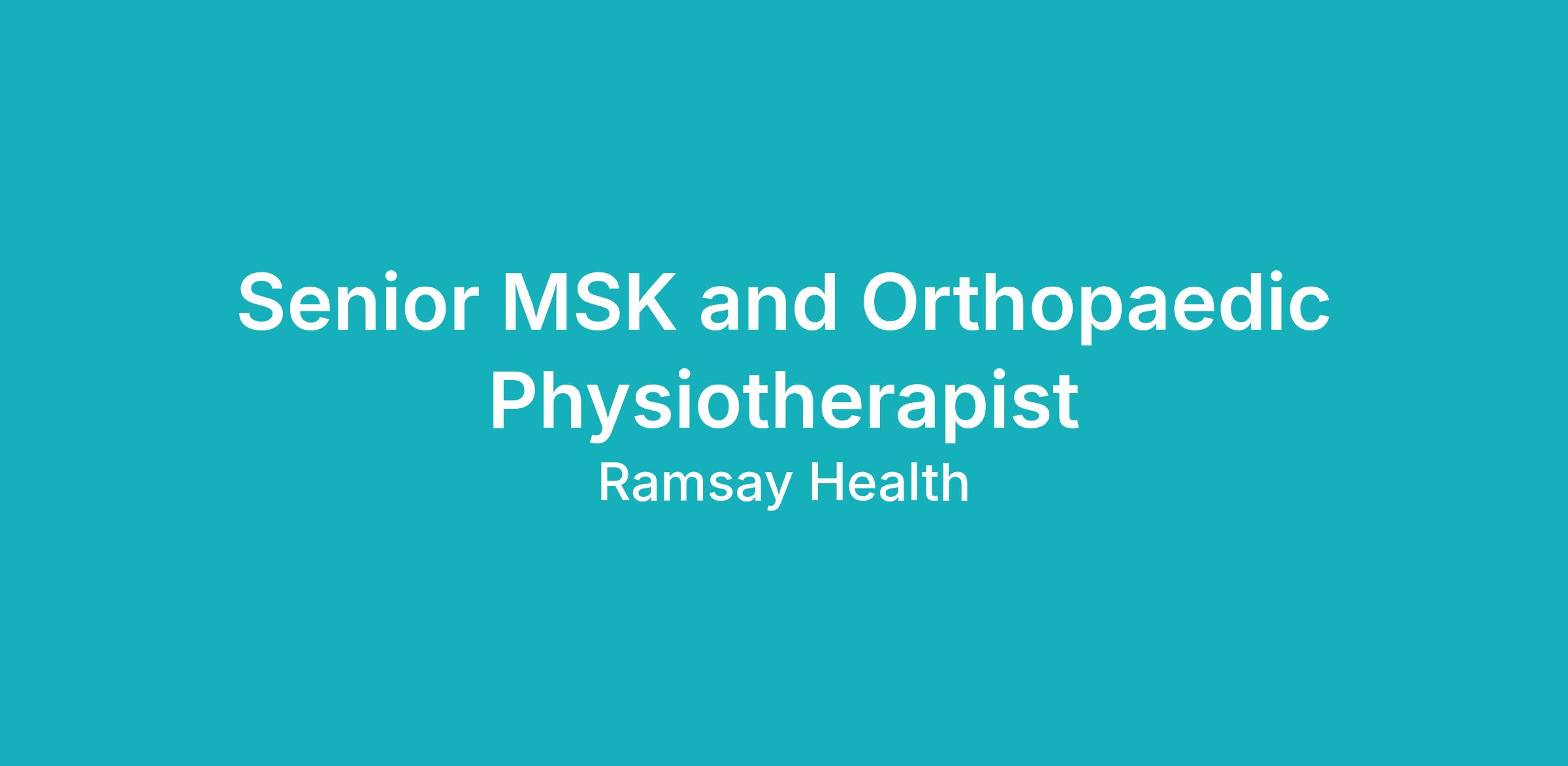 Senior MSK Outpatient/Orthopaedic Inpatient Physiotherapist