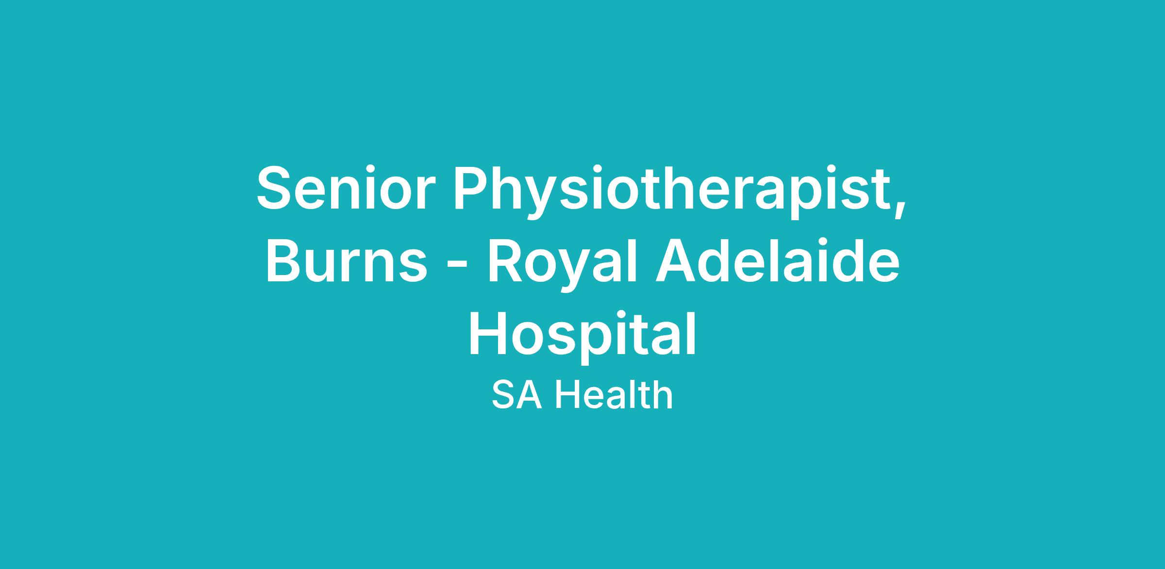 Step into a senior role at the Royal Adelaide Hospital Burns Unit.