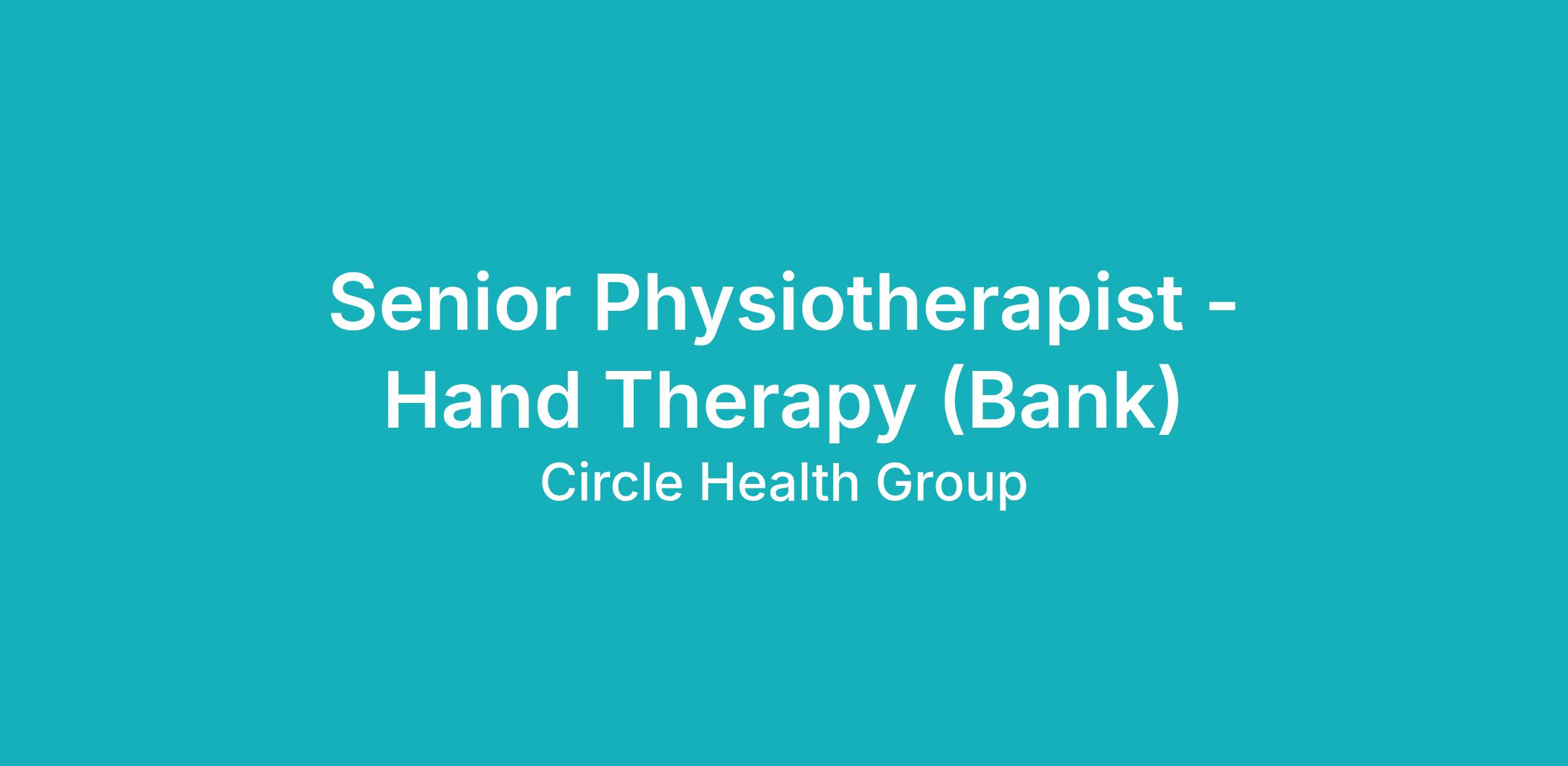 Senior Physiotherapist - Hand Therapy (Bank)