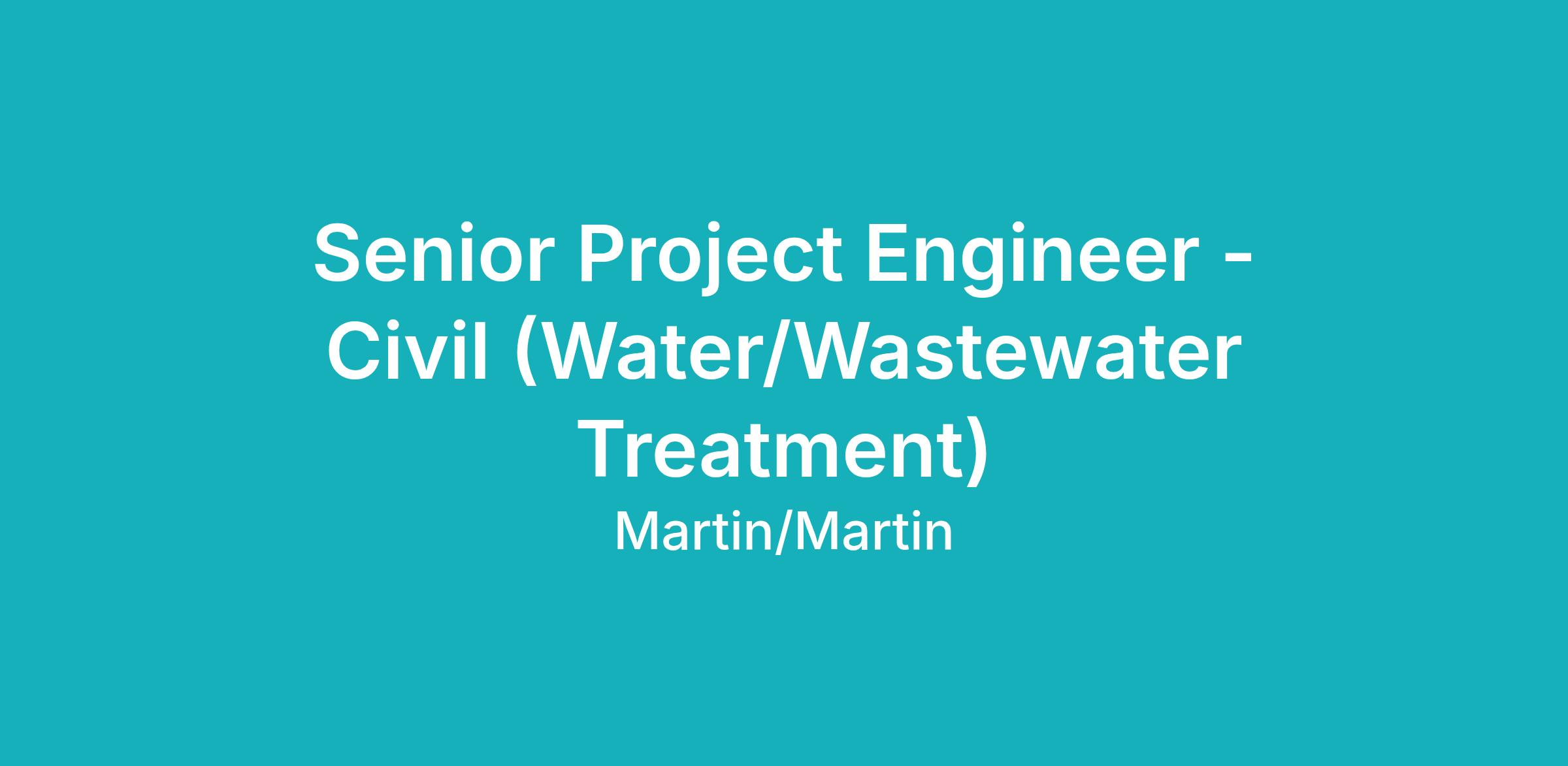 Martin/Martin, Inc. is looking for a senior project engineer/manager to join our Civil Engineering Group in our Lakewood, Colorado office This senior-level engineer will primarily be focused on water and wastewater projects, including treatment for projects located in Colorado, the Southwest, across the U.S. and in international locations.