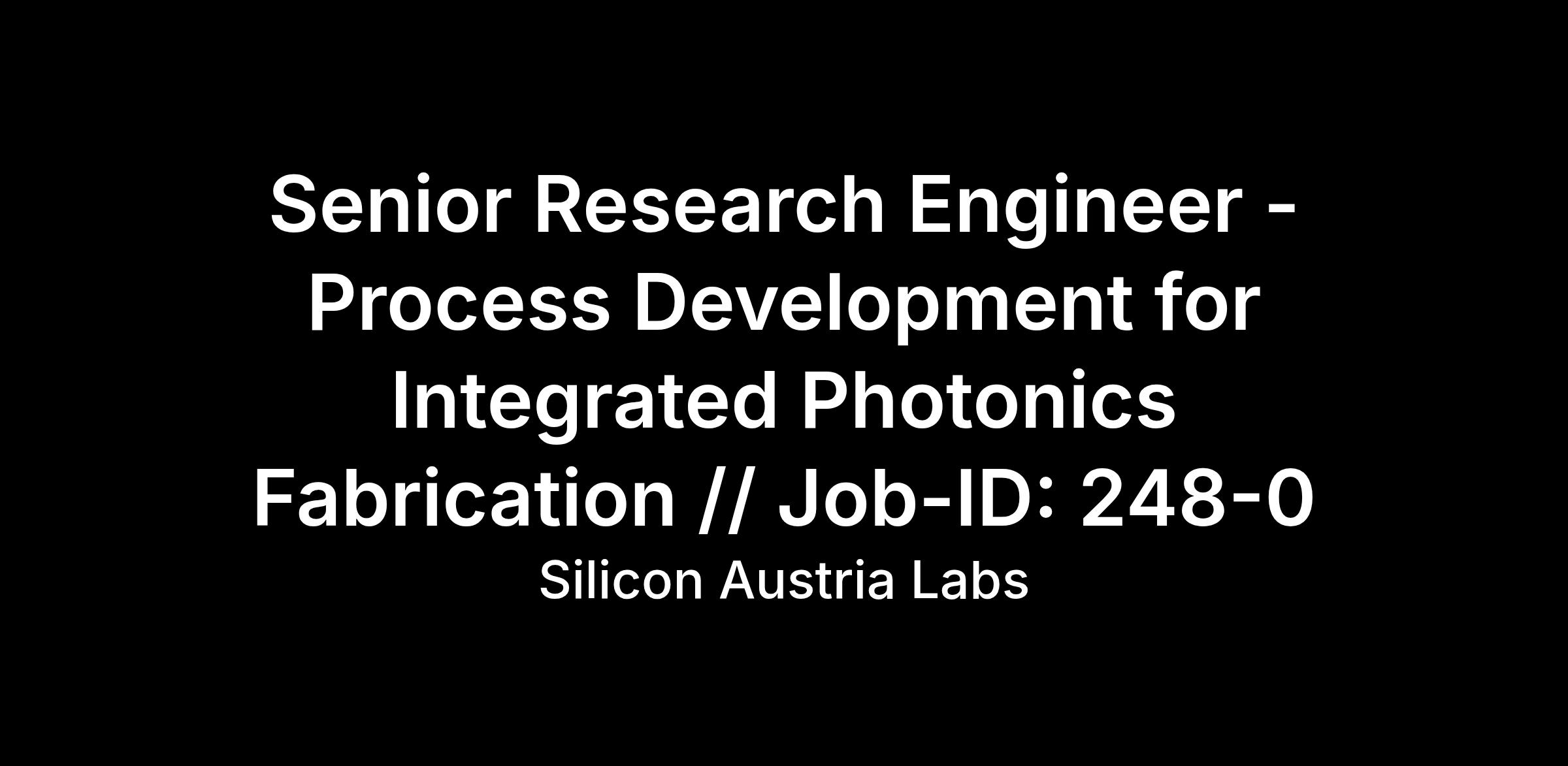 Senior Research Engineer - Process Development for Integrated Photonics Fabrication // Job-ID: 248-0