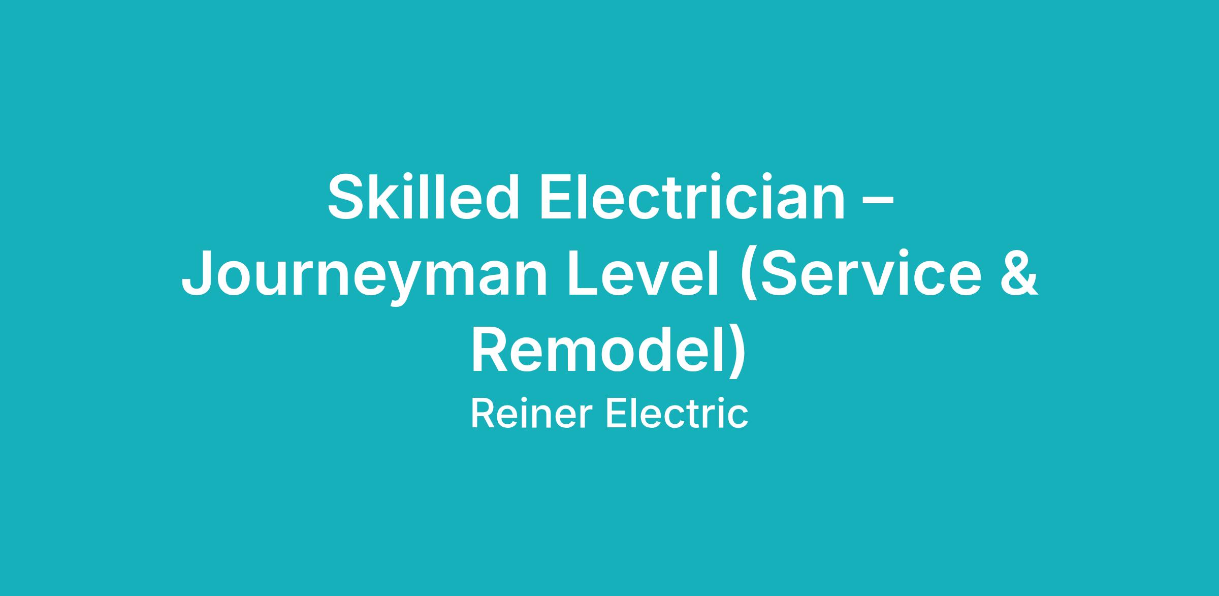 Skilled Electrician – Journeyman Level (Service & Remodel)