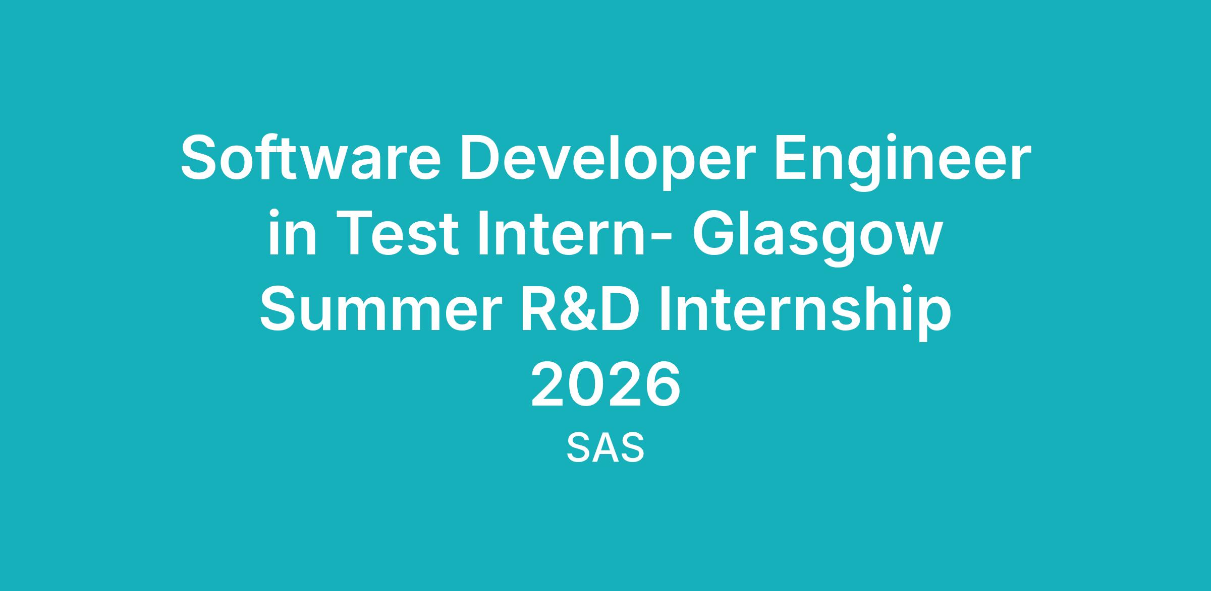 Glasgow Summer R&D Internship 2026