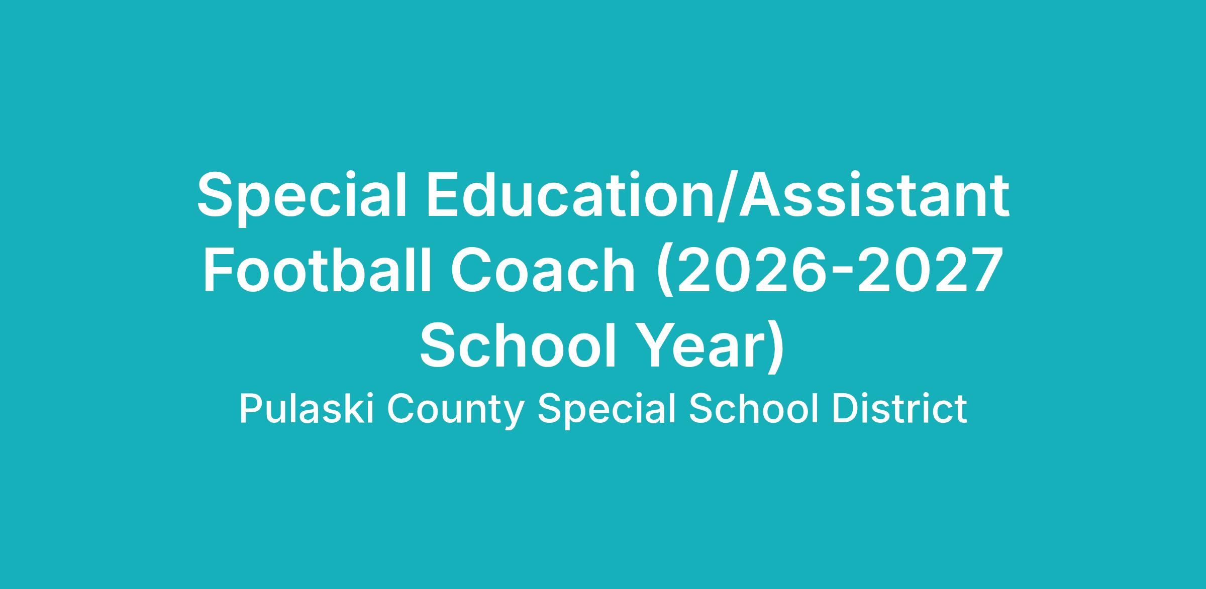 POSITION TITLE: SPECIAL EDUCATION TEACHER/Assistant Football Coach