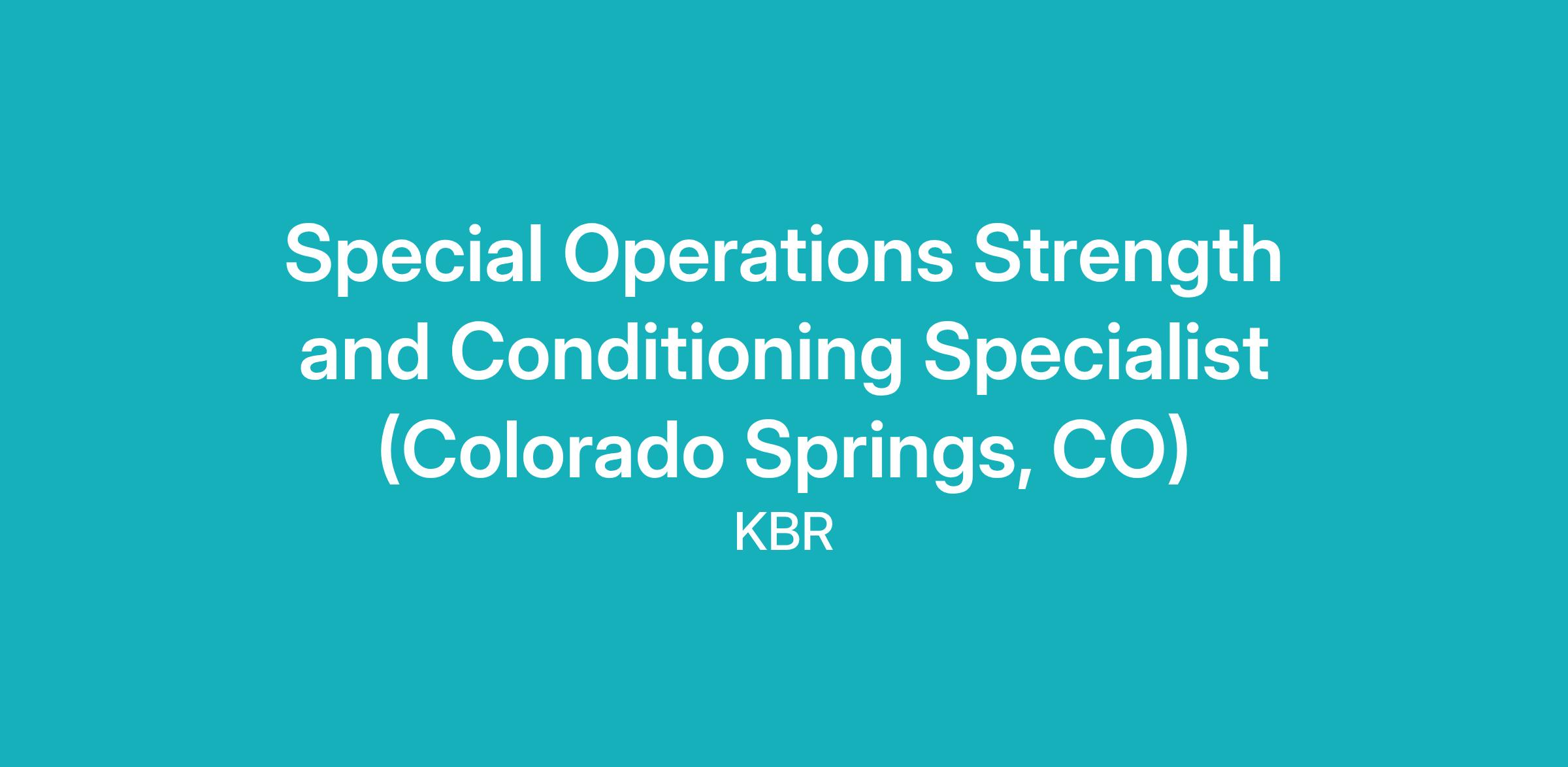 Special Operations Strength and Conditioning Specialist (Colorado Springs, CO)Belong. Connect. Grow. with KBR!