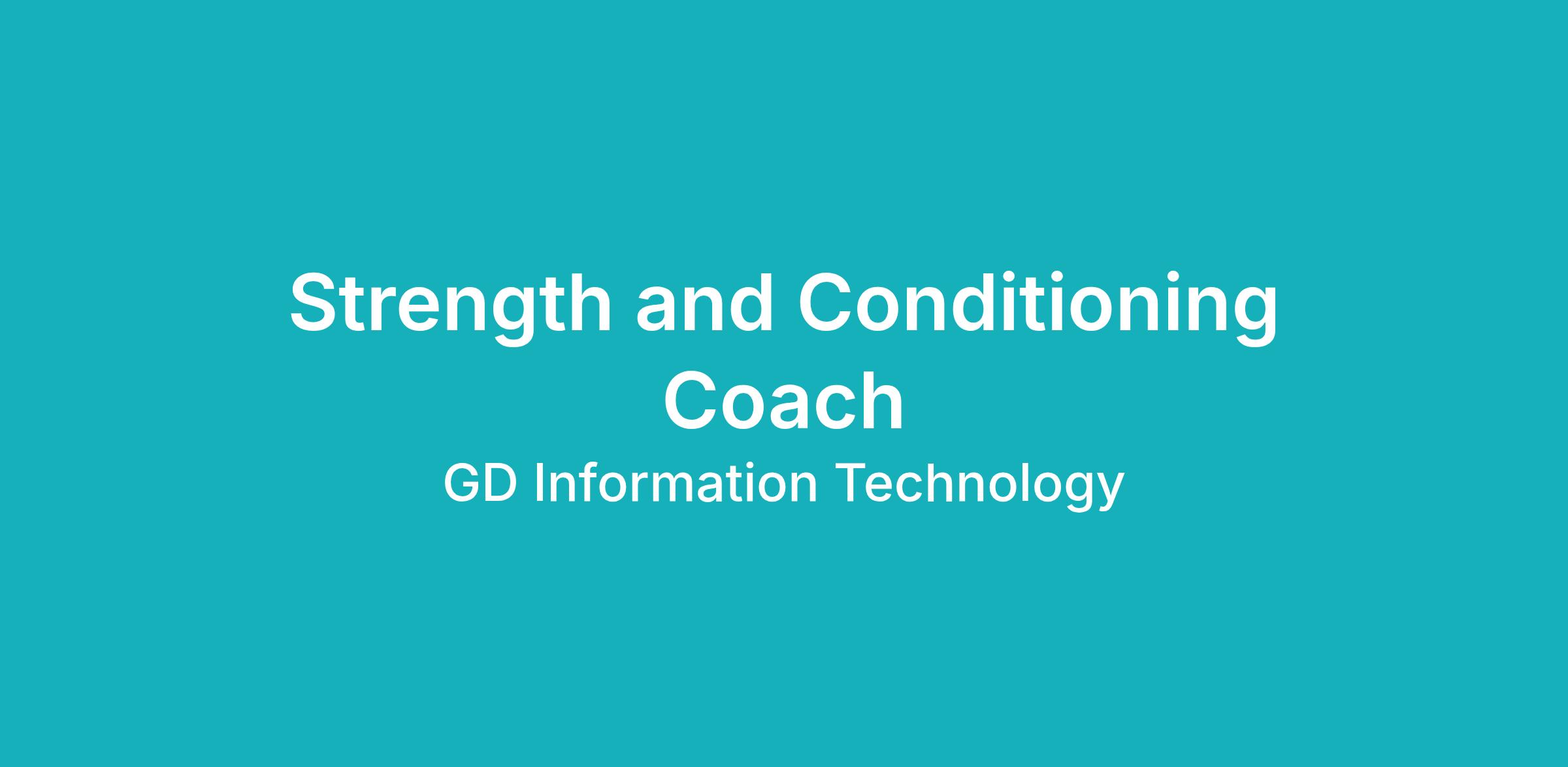 At GDIT, people are our differentiator. As a Strength and Conditioning Coach supporting our customer, you will help ensure today is safe and tomorrow is smarter. Our work depends on a Strength and Conditioning Coach joining our team.