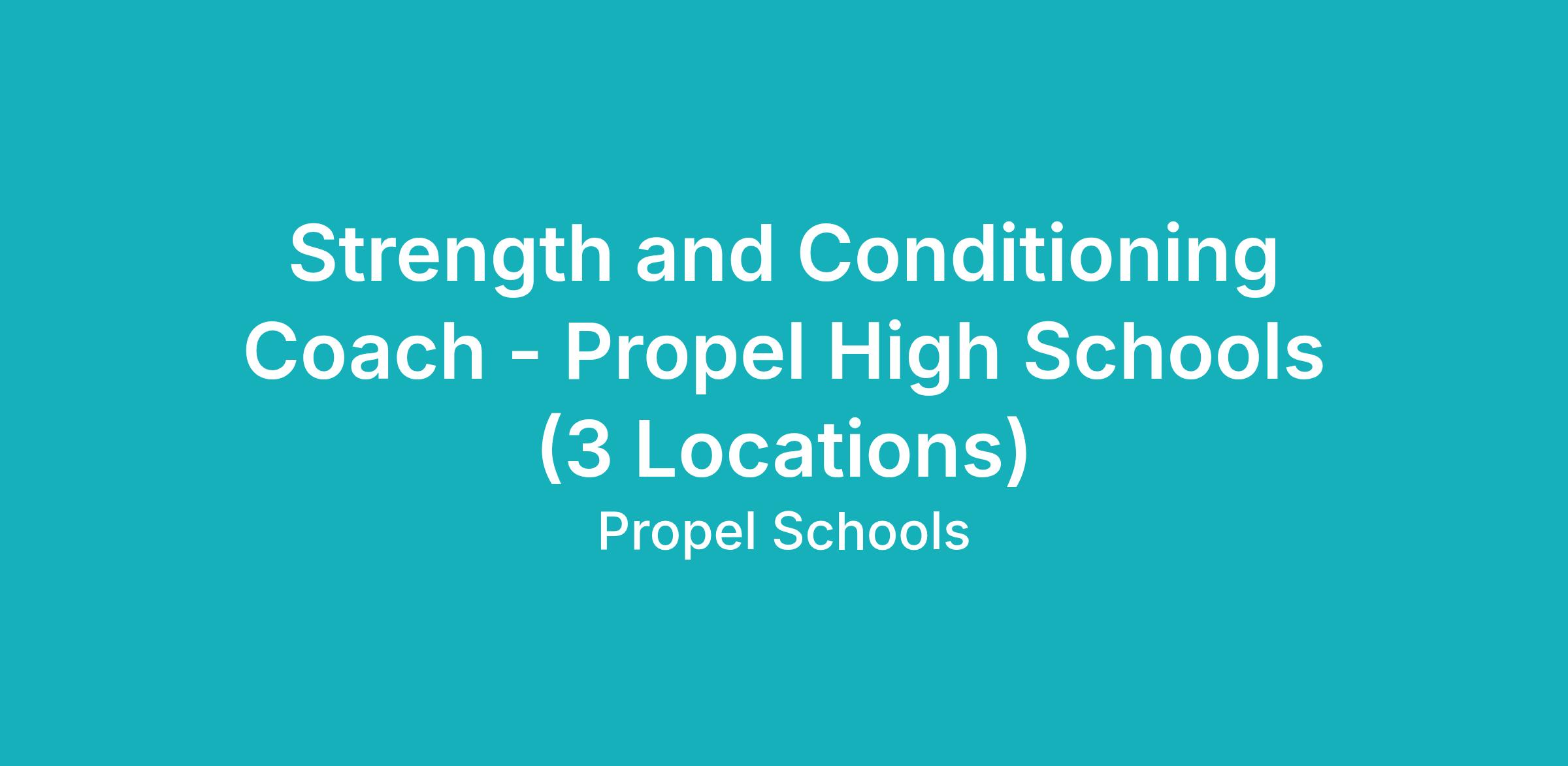 Propel Schools is seeking a Strength and Conditioning Coach for the 2026 spring varsity season (March-June). The Strength and Conditioning coach will rotate and provide support across multiple interscholastic sports programs in alignment with seasonal demands and practice schedules.