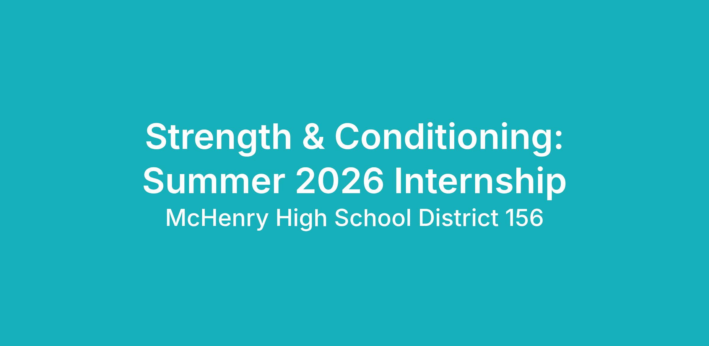 Strength & Conditioning: Summer 2026 Internship