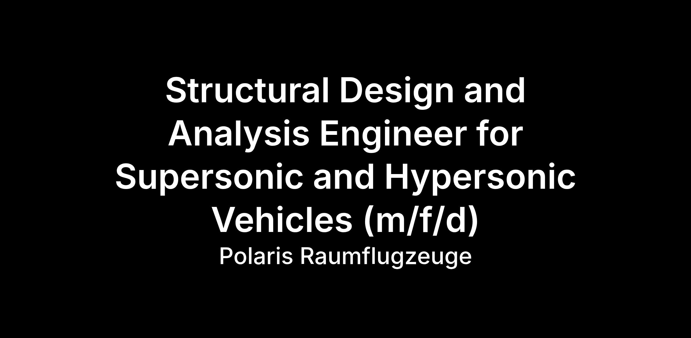 Structural Design and Analysis Engineer for Supersonic and Hypersonic Vehicles (m/f/d)