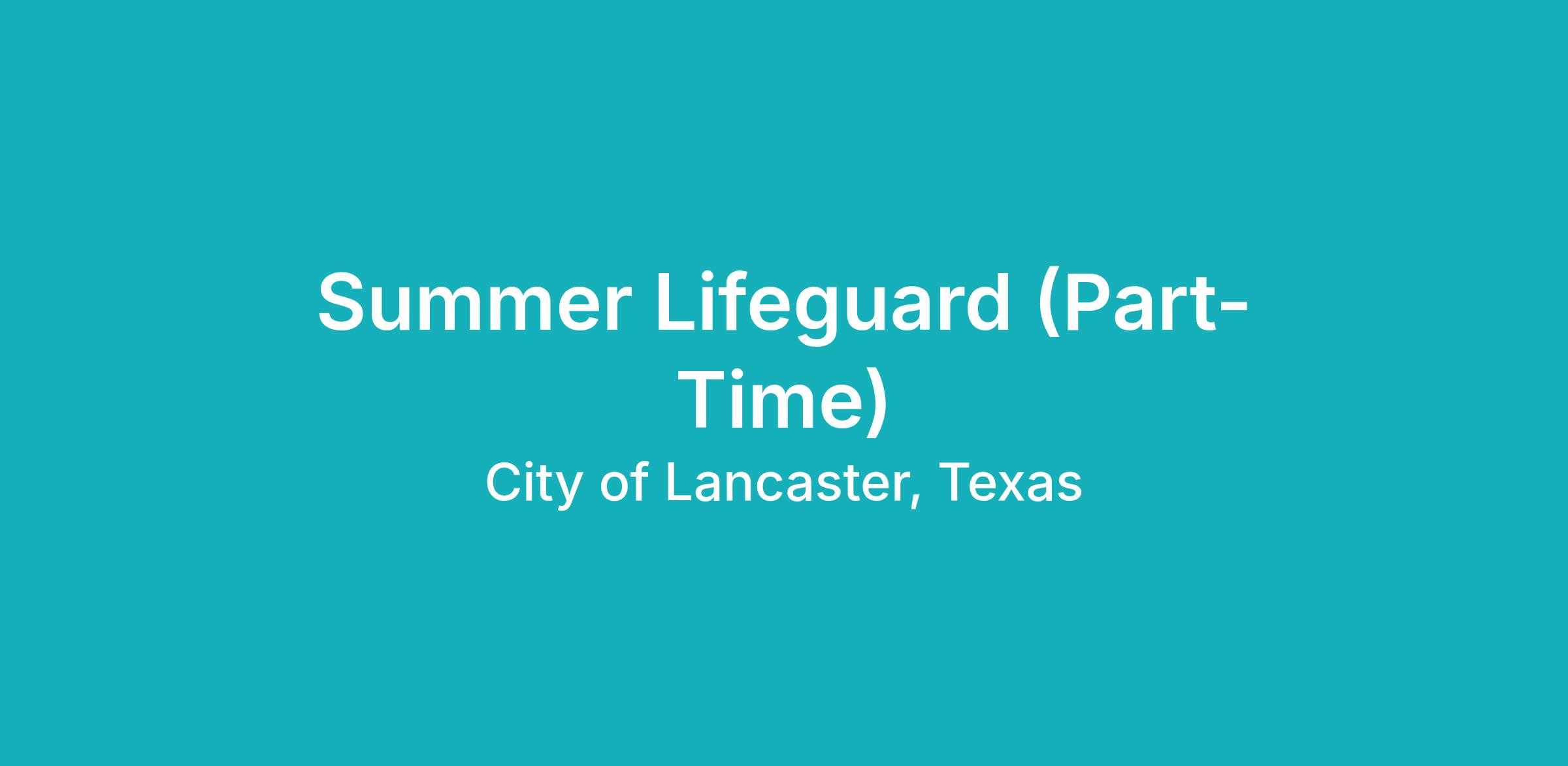 The City of Lancaster is looking for energetic, dependable, and service-minded individuals to join our team as Summer Lifeguards. In this role, you will help maintain a safe and enjoyable aquatic environment by enforcing pool rules, identifying hazards, responding to emergencies, administering first aid and CPR when needed, and supporting daily pool operations.