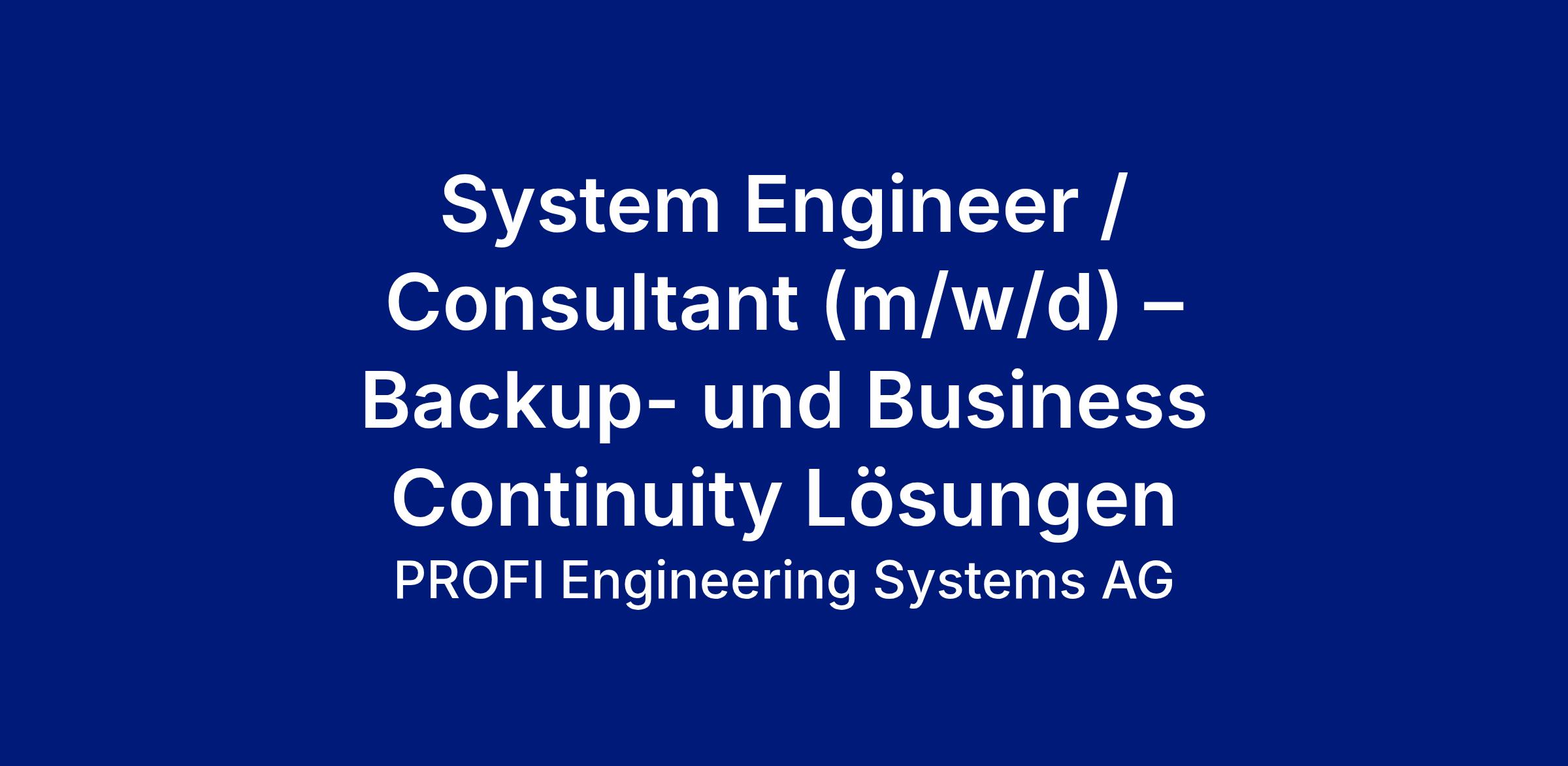 System Engineer / Consultant (m/w/d) – Backup- und Business Continuity Lösungen