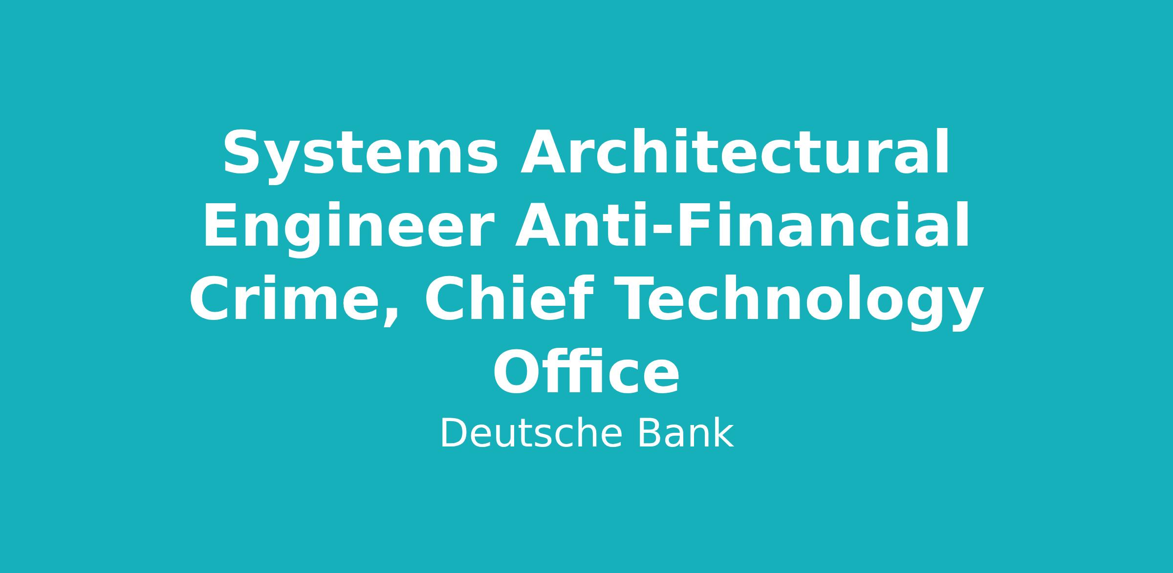 Job Title Systems Architectural Engineer Anti-Financial Crime, Chief Technology Office