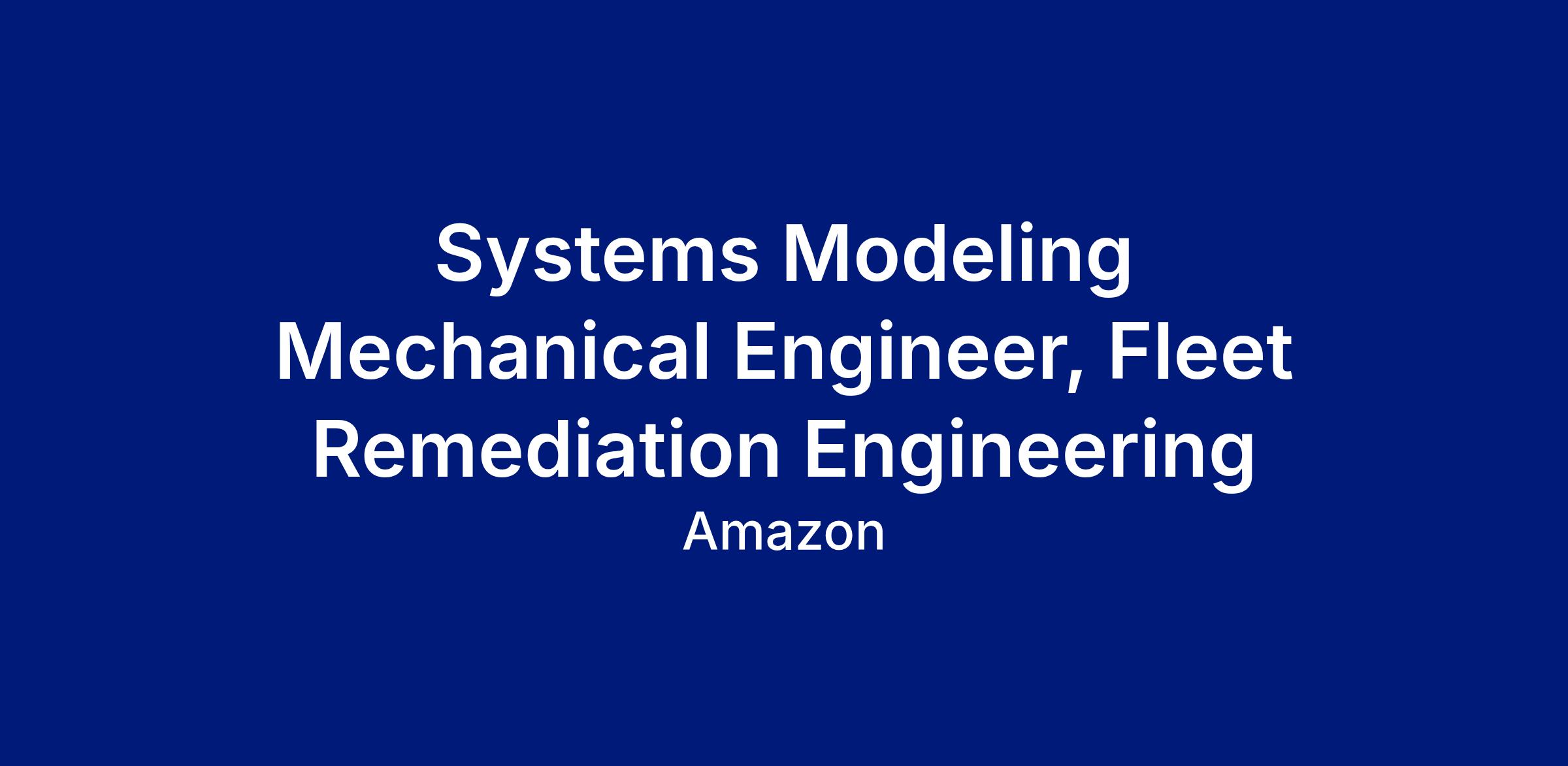Systems Modeling Mechanical Engineer, Fleet Remediation Engineering