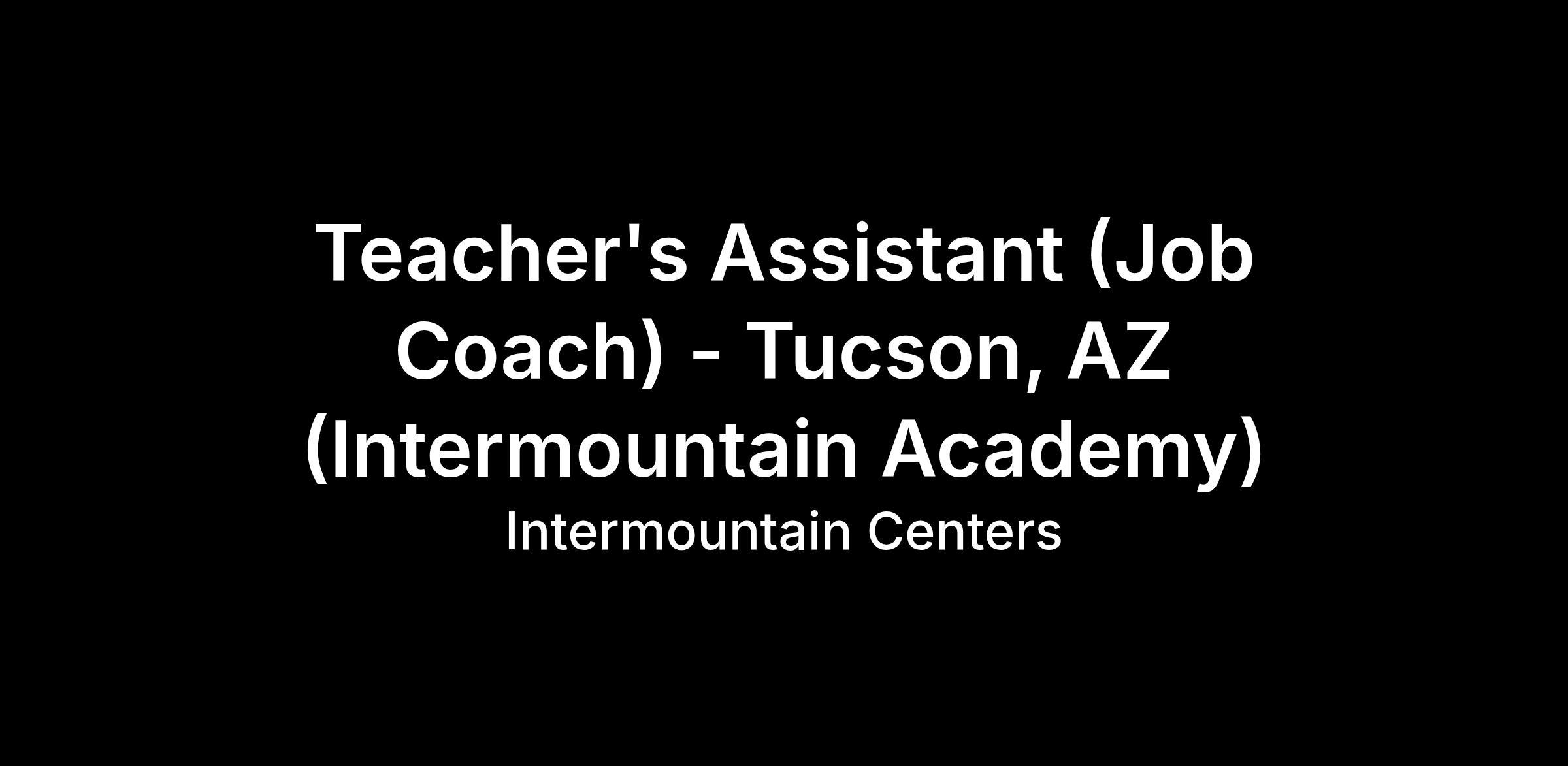 General Summary: The Teacher’s Assistant I provides school-based educational, behavioral, and self-care services to individuals who are diagnosed with autism spectrum disorders at Intermountain Academy.