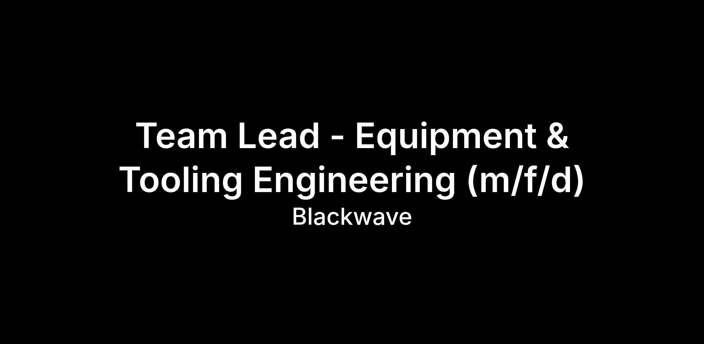 Team Lead - Equipment & Tooling Engineering (m/f/d)