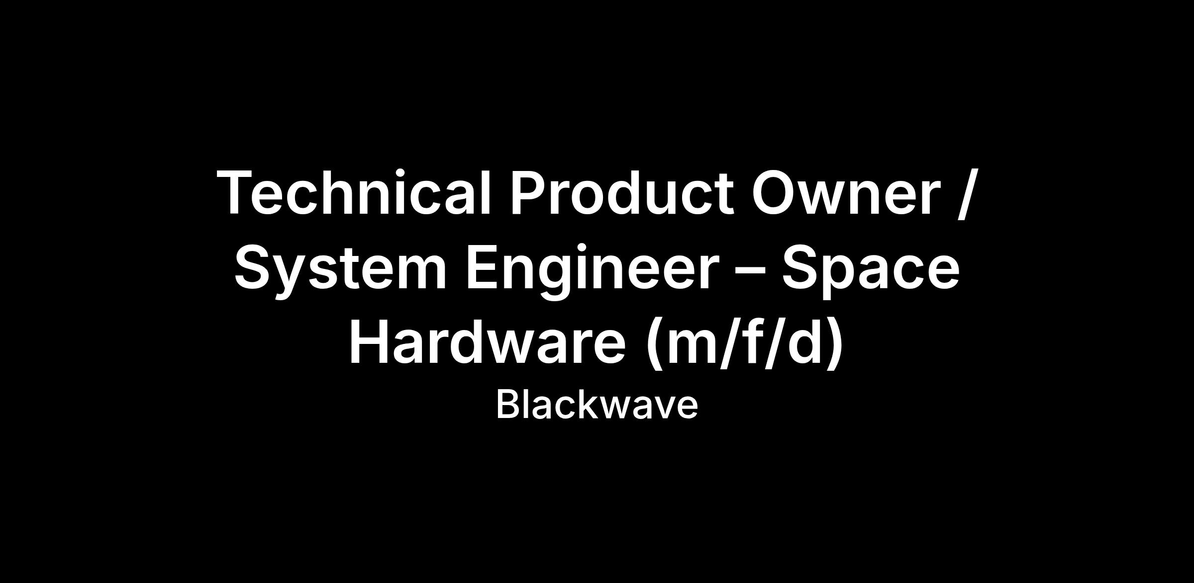 Technical Product Owner / System Engineer – Space Hardware (m/f/d)