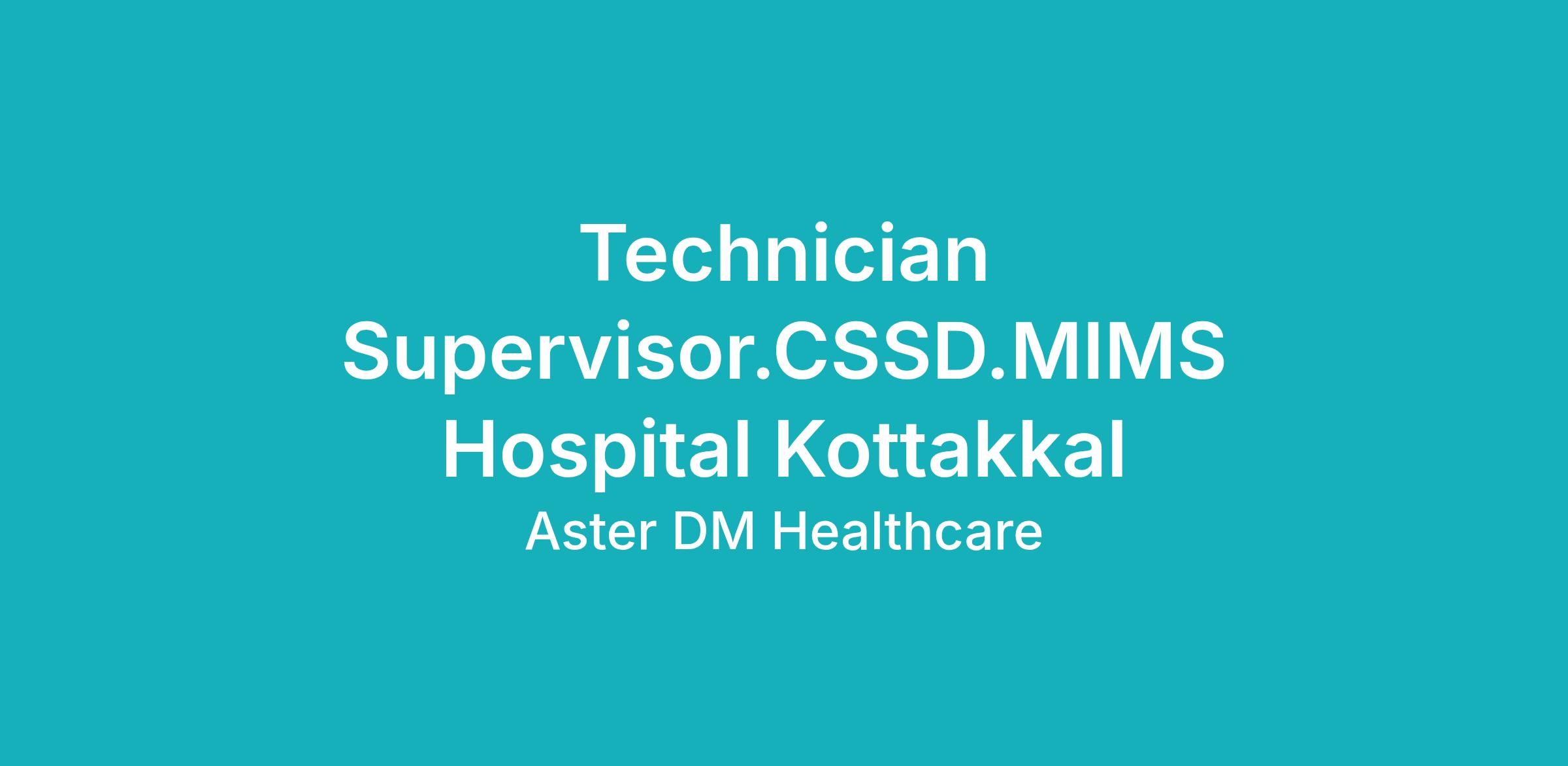 Technician Supervisor.CSSD.MIMS Hospital Kottakkal