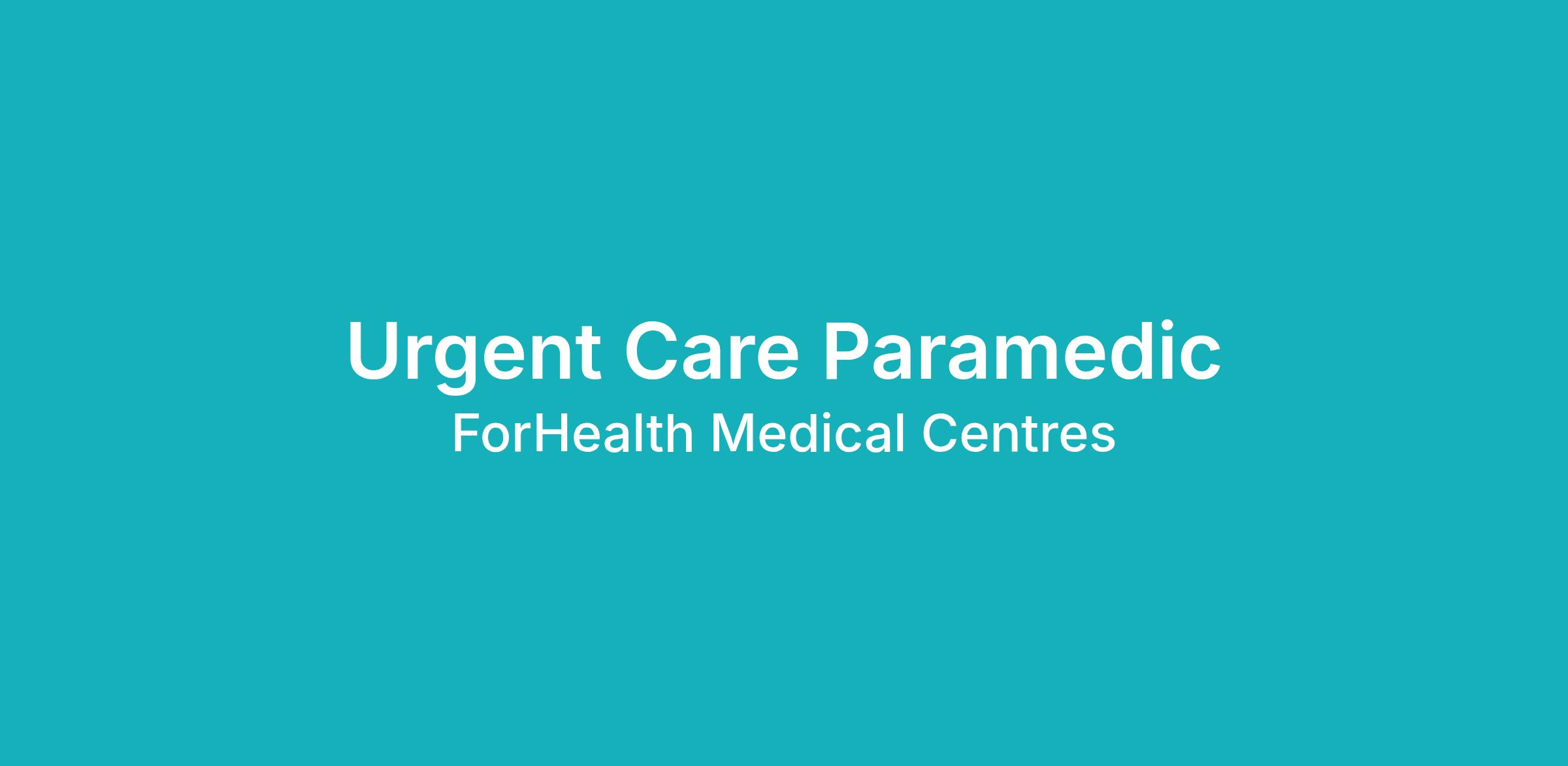 The Role – Urgent Care Nurse or Paramedic