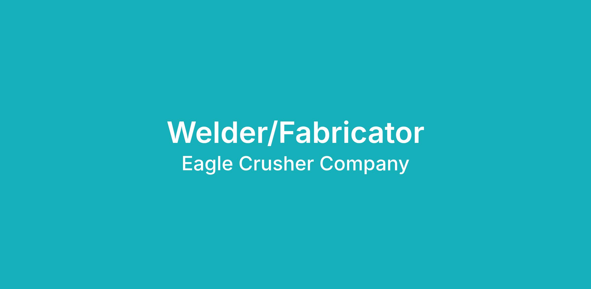 Eagle Crusher is looking for Welders that will be graduating or anyone with years of experience in welding.
