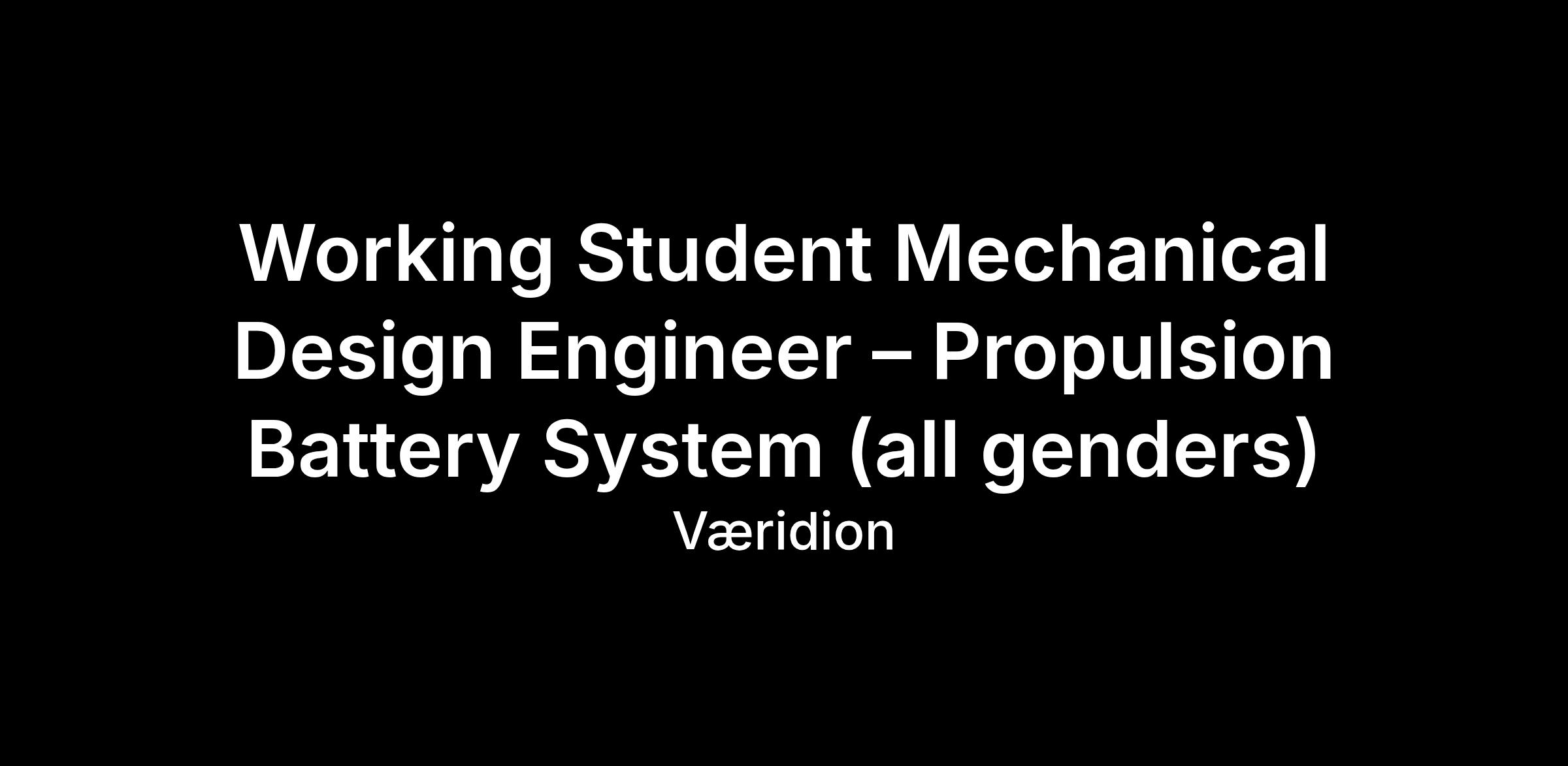 Working Student Mechanical Design Engineer – Propulsion Battery System (all genders)